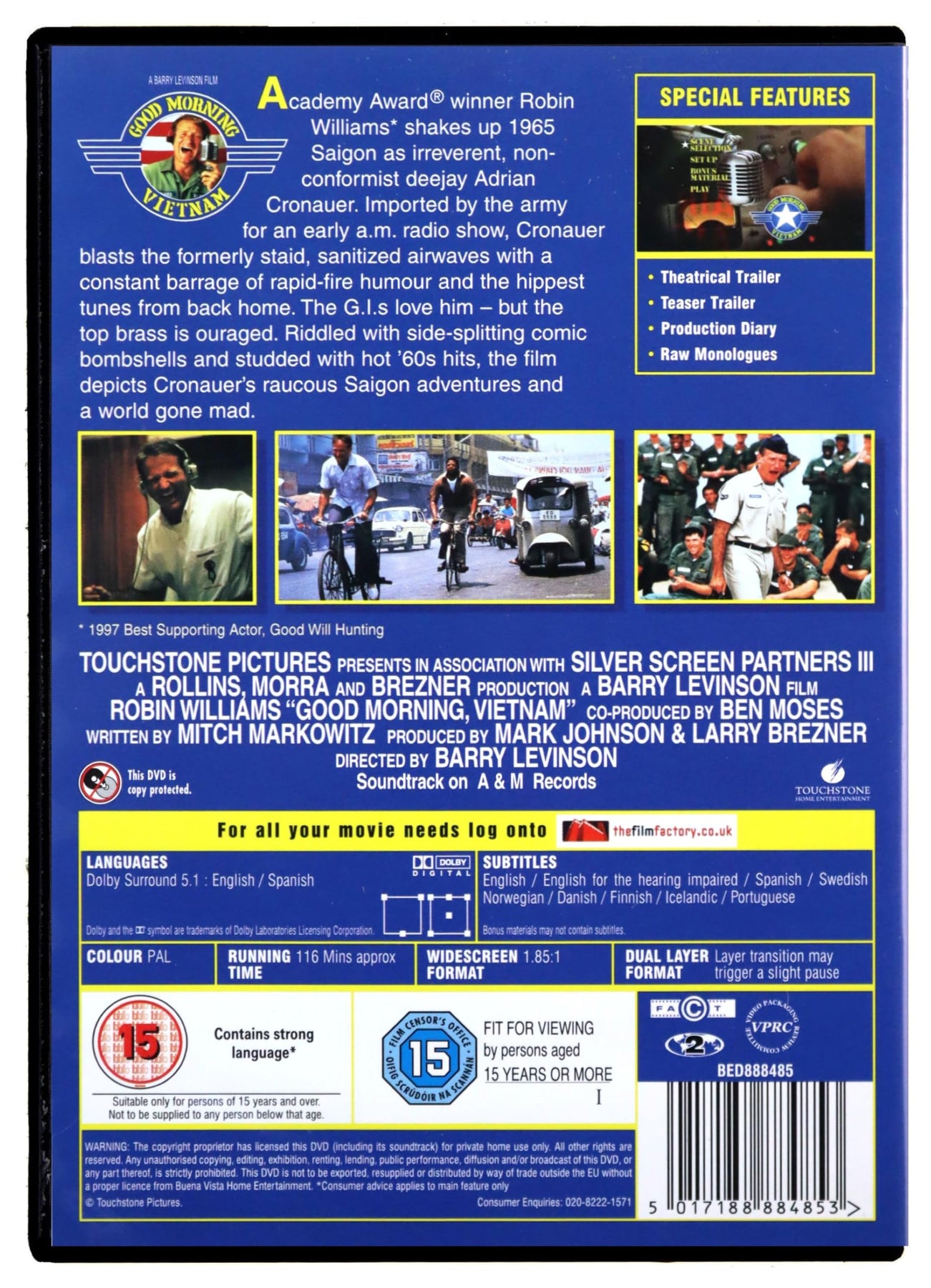 - Production Diary with interviews from director Barry Levinson, crew, and real-life Adrian Cronauer
