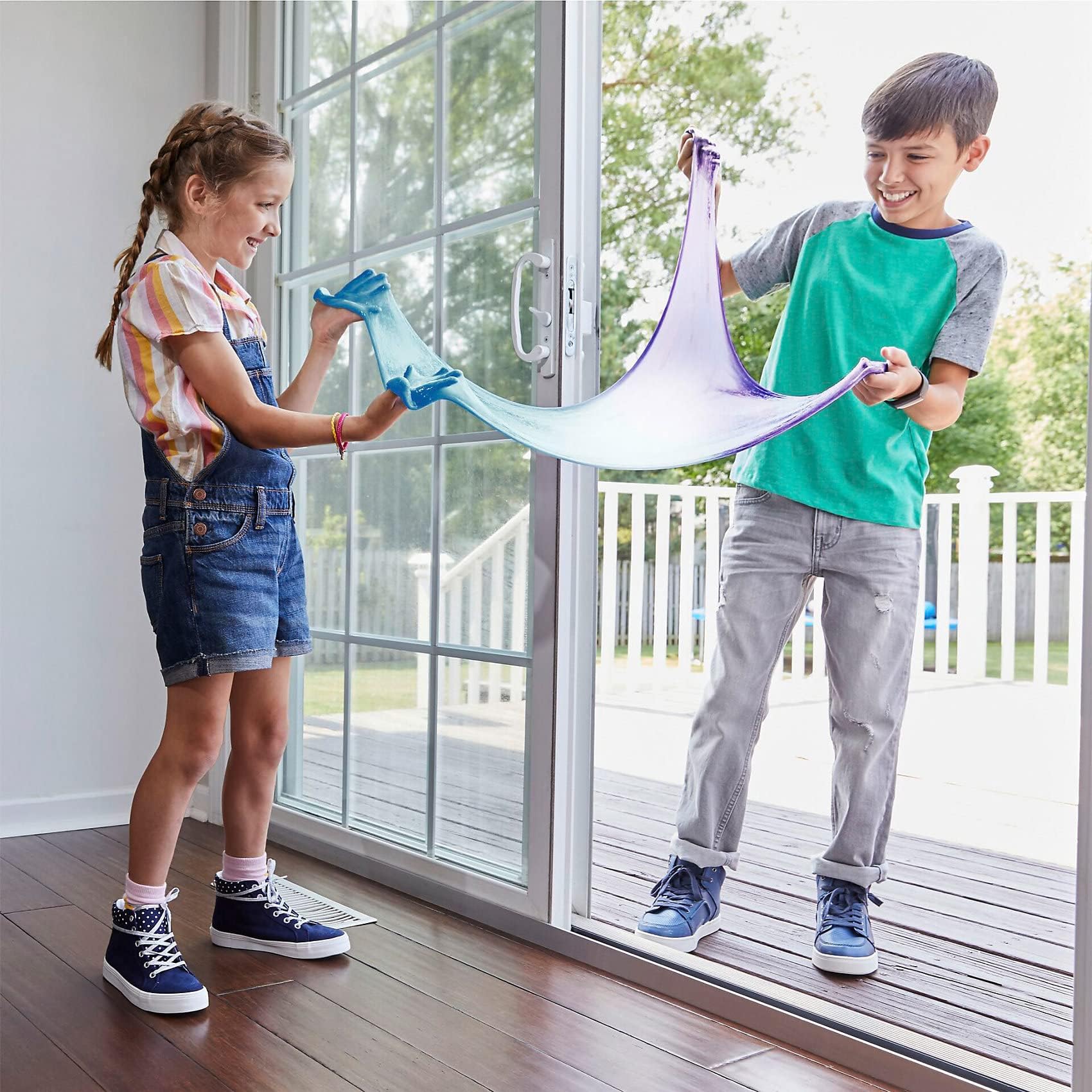 Make slime that thrills with the Elmer’s Colour Changing Slime Kit. This engaging playset lets kids create satisfying, stretchy slime that magically transforms colors under UV light or sunlight. Watch as the slime shifts from blue to purple and yellow to red, offering endless sensory fun and creative exploration.