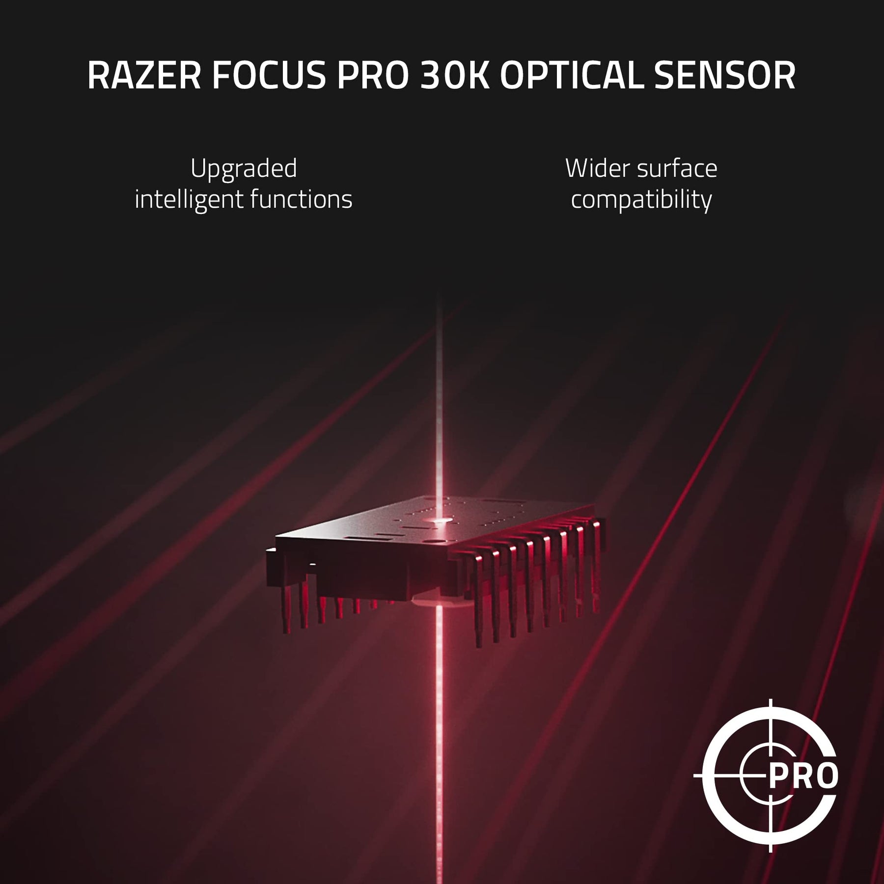 - Razer Focus Pro 30K Optical Sensor for precise tracking on diverse surfaces, including glass