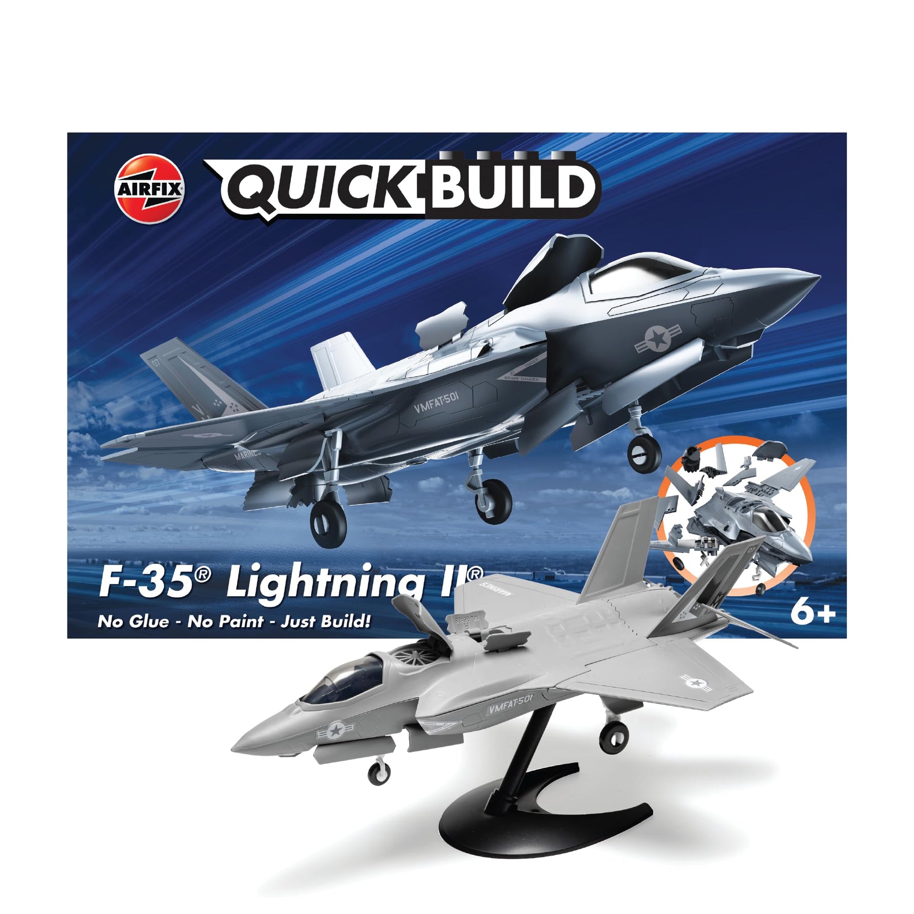 Build a detailed replica of the iconic F-35B Lightning II with the Airfix QUICKBUILD model kit – a fun, glue-free and paint-free construction experience perfect for young aviation enthusiasts and model builders of all ages. This snap-together aircraft model offers hands-on creative play and displays proudly once complete.