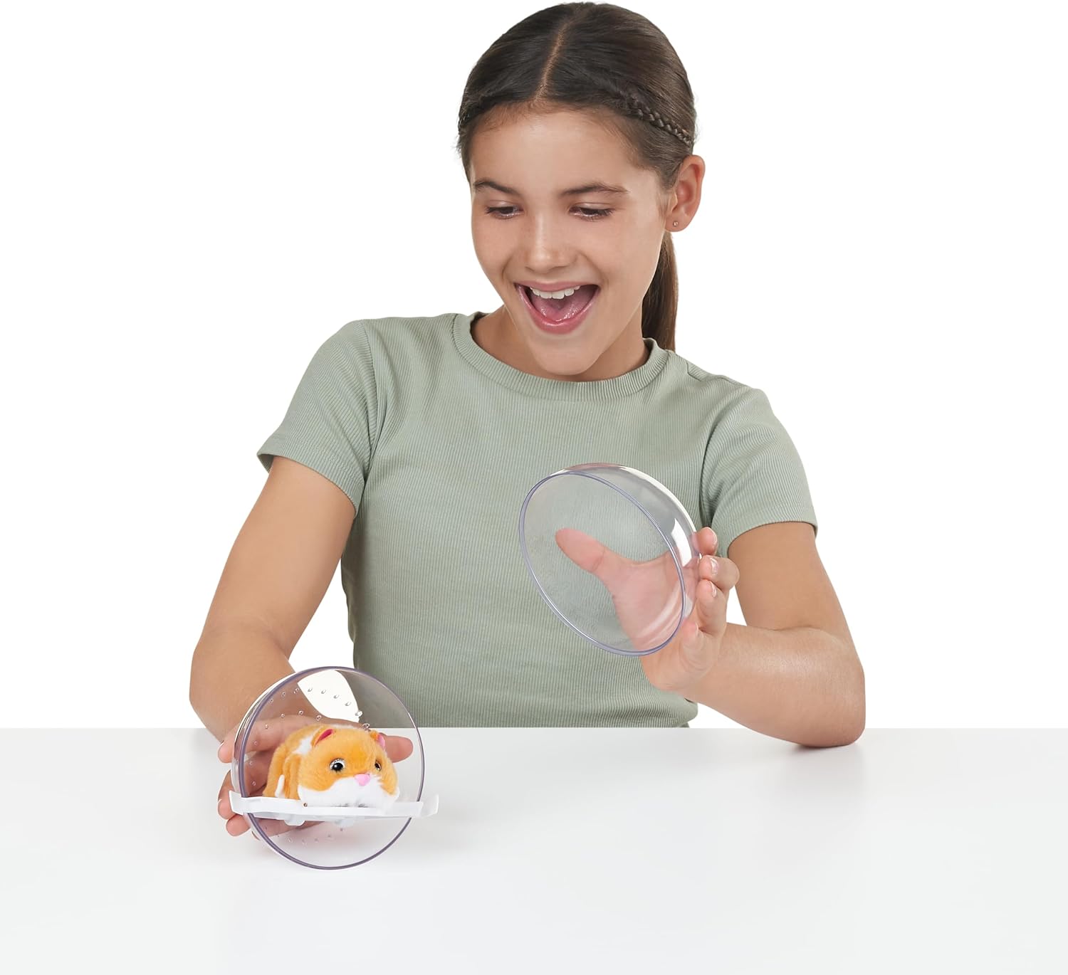 Bring home the adorable and interactive Hamster Mania pet from ZURU! This playful purple hamster scurries around inside and outside its ball, making it a fun and engaging electronic toy that mimics real hamster behavior. With smart technology, it can sense doors, walls, and obstacles, creating an immersive play experience that delights children and pet lovers alike.