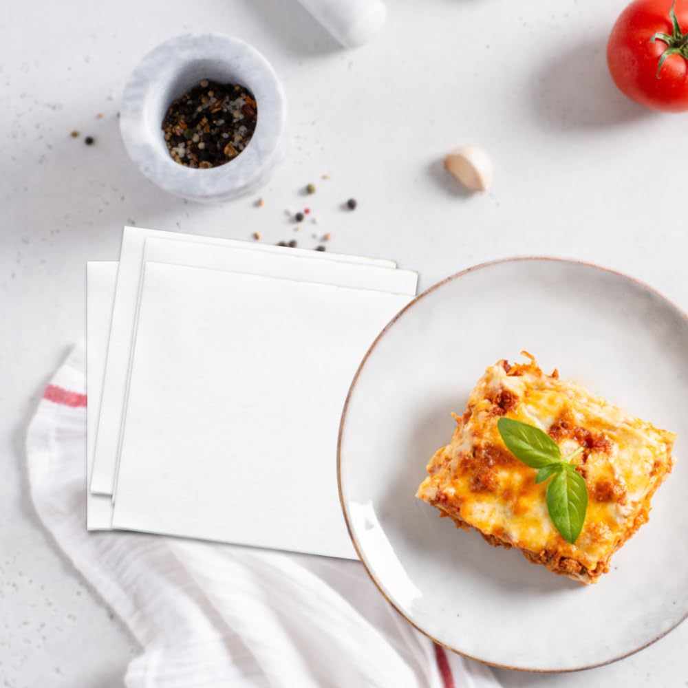 With a classic white finish and practical dimensions of 30 x 30 x 0.1 cm per napkin and a total weight of 130 g per pack, these napkins blend functionality with simplicity.
