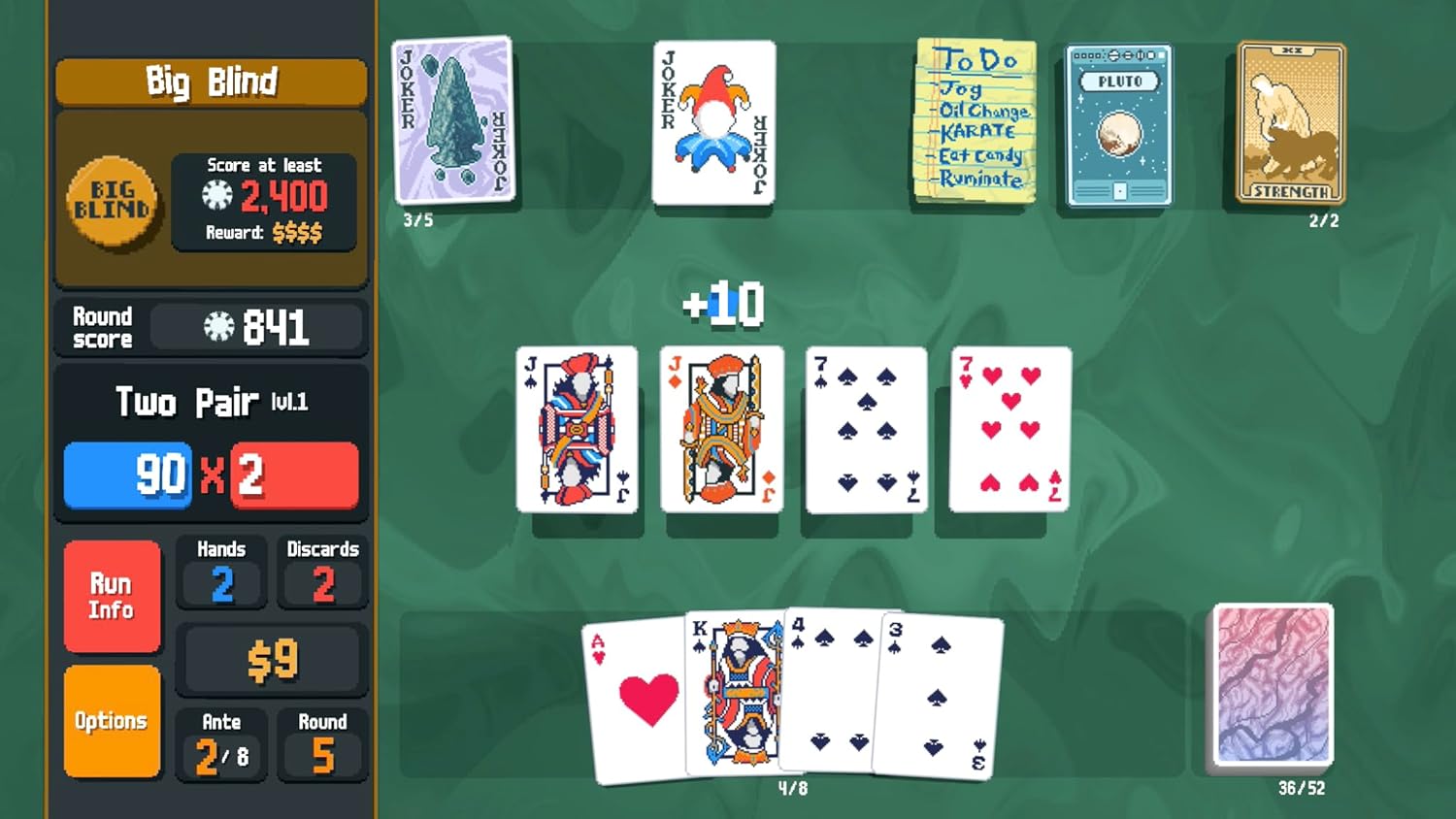 Balatro is a hypnotically satisfying deckbuilder where you play illegal poker hands, discover game-changing jokers, and trigger adrenaline-pumping, outrageous combos.