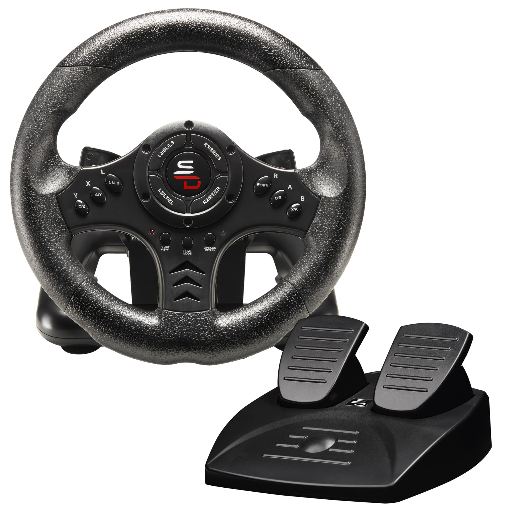 - Includes pedal board with accelerator and brake pedals, featuring anti-slip pads and footrest for stability