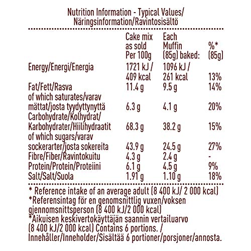 Betty Crocker Chocolate Chunk Muffin Mix makes it easy to create delicious chocolate muffins with rich white chocolate chunks and chocolate chips. Each kit includes muffin mix and cases, delivering bakery-style treats in just 20–25 minutes with simple ingredients: water and oil.