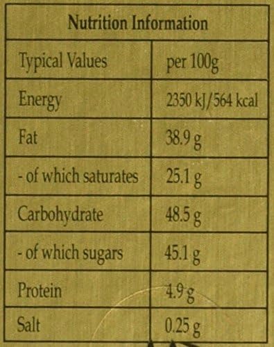 White chocolate (sugar, cocoa butter, whole MILK powder, emulsifier (SOYA lecithin), natural vanilla flavouring), milk chocolate (sugar, cocoa butter, whole MILK powder, cocoa mass, emulsifier (SOYA lecithin), natural vanilla flavouring), salted butter (MILK) (11.5%), icing sugar, Marc de Champagne (2.5%), white rum, colour (beetroot red), natural flavouring (strawberry). Store in a cool, dry place. Consume as a dessert or treat.