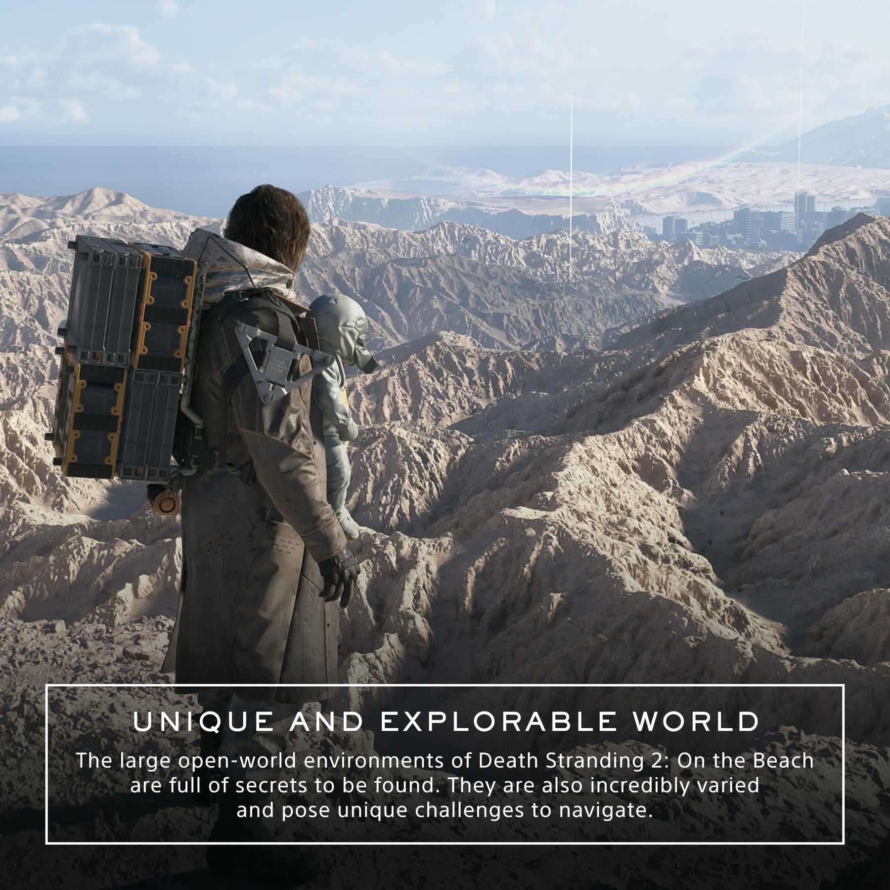 Embark on an inspiring mission of human connection beyond the UCA. Sam—with companions by his side—sets out on a new journey to save humanity from extinction. Join them as they traverse a world beset by otherworldly enemies, obstacles and a haunting question: should we have connected? Step by step, legendary game creator Hideo Kojima changes the world once again.