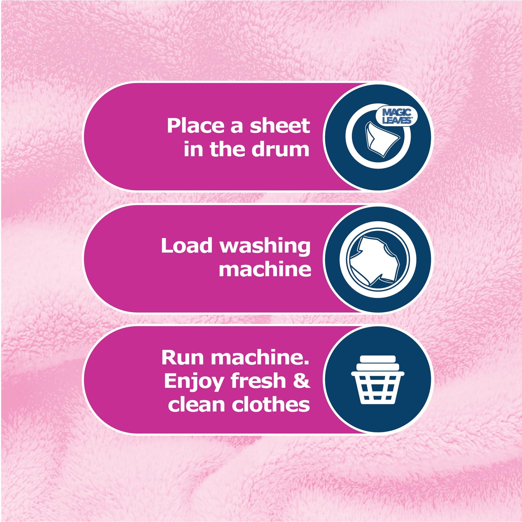 - For machines: Place one sheet directly into the drum before adding laundry (up to 4.5 kg)