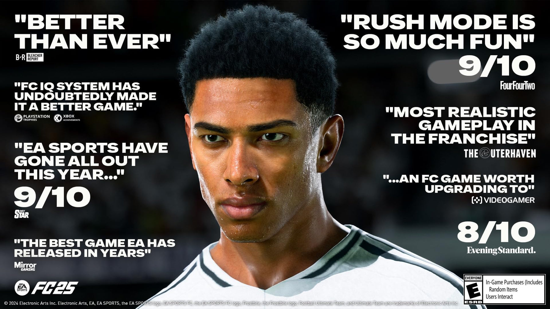EA SPORTS FC™ 25 delivers more ways to win for the club with enhanced gameplay and deeper tactical control. Team up with friends in new and favorite modes, including the fast-paced 5v5 Rush, and experience authentic football action like never before.