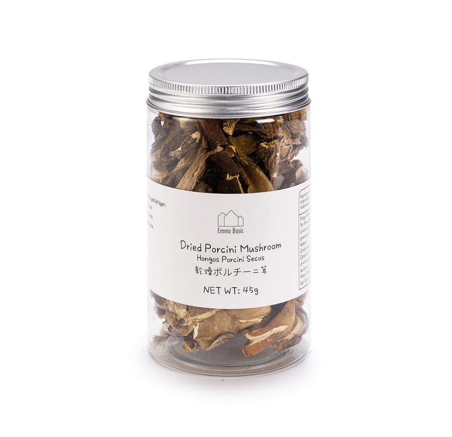 Dried Porcini Mushrooms from Emma Basic offer a rich, earthy flavour and meaty texture, making them a versatile ingredient in a variety of dishes. When dried, porcini mushrooms develop a more intense umami taste due to increased guanylate content, enhancing soups, stews, stir-fries, and sauces. Rehydrate by soaking in warm water for 20–30 minutes, then use in recipes with vegetables, noodles, omelettes, or meat dishes. The soaking liquid can also be used to create a flavourful dashi or broth base.
