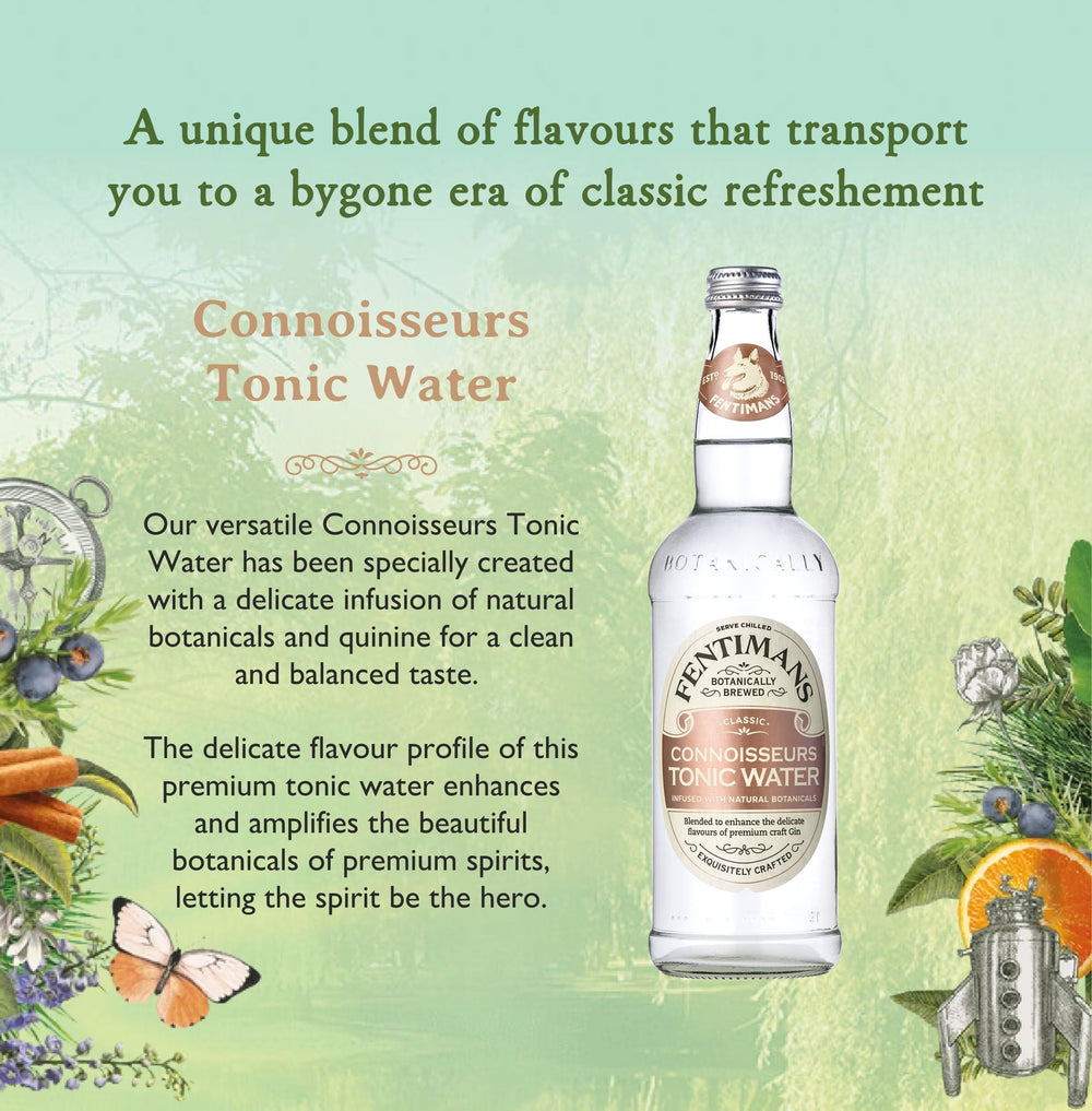 Experience the difference of truly crafted mixers — choose Fentimans Connoisseurs Tonic Water for a refined, natural cocktail experience.