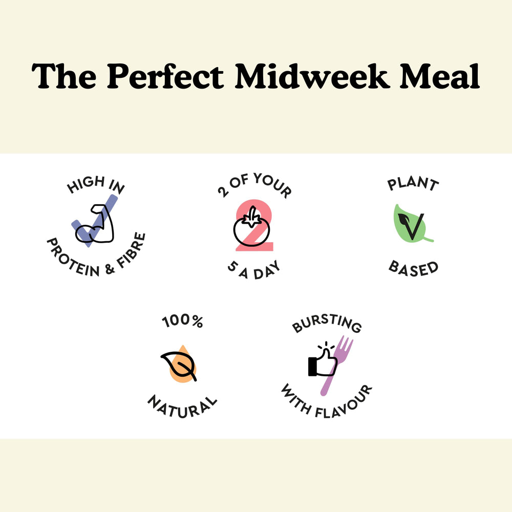 - Part of a range including Smokey Mexican Black Bean Chilli, Rich Chana Masala, Italian Sundried Tomato & Lentil Ragu, and Moroccan Chickpea Tagine Stew