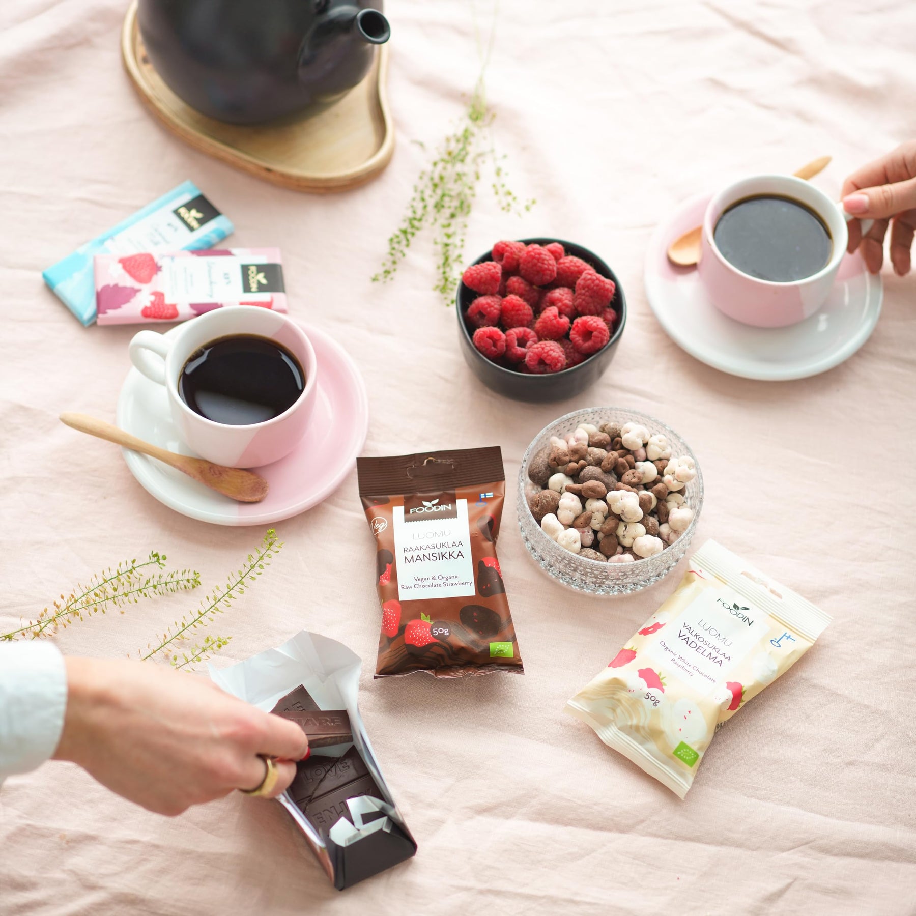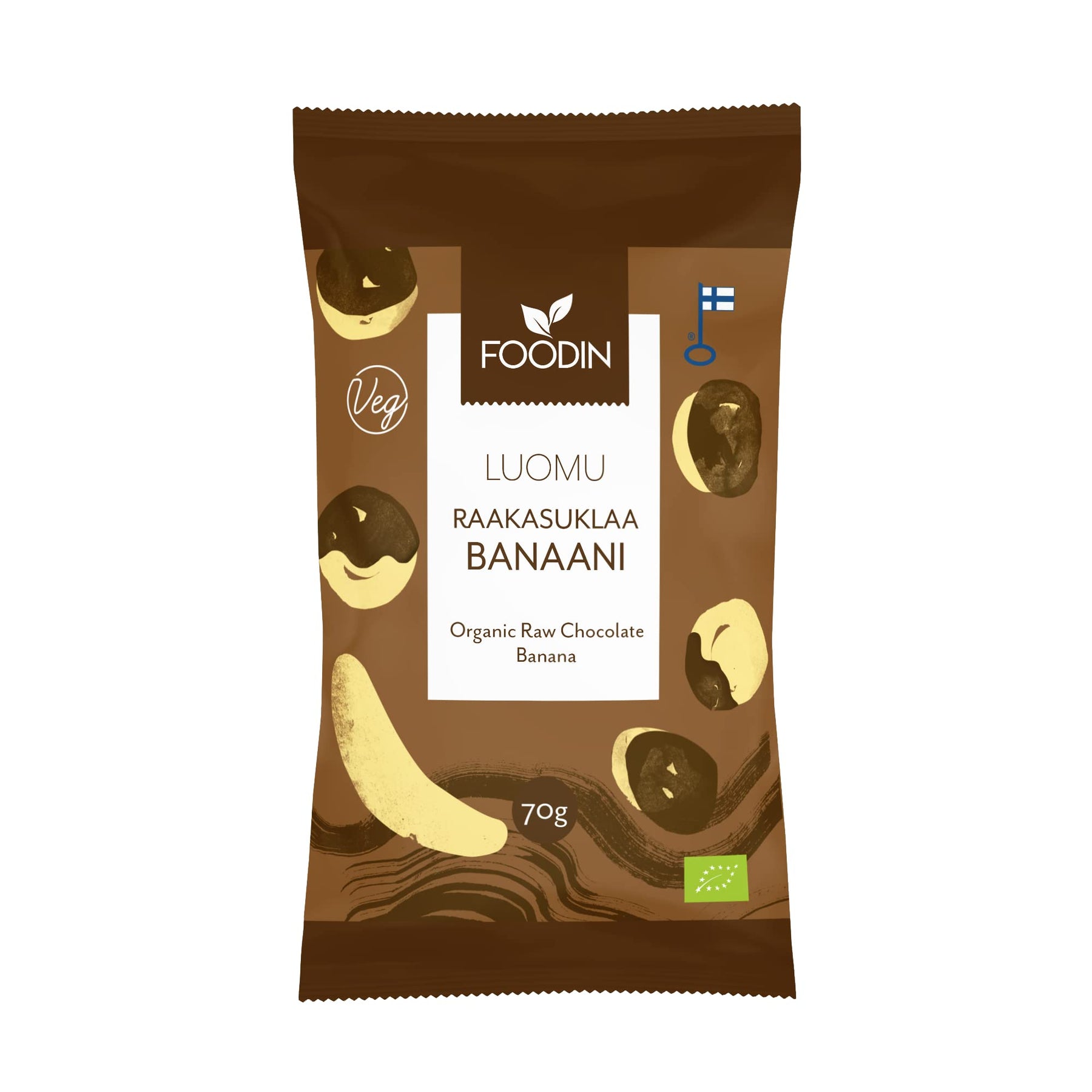 - Ingredients: Raw chocolate* (cacao nibs*, coconut sugar*, cacao butter*), banana* (*=organic)