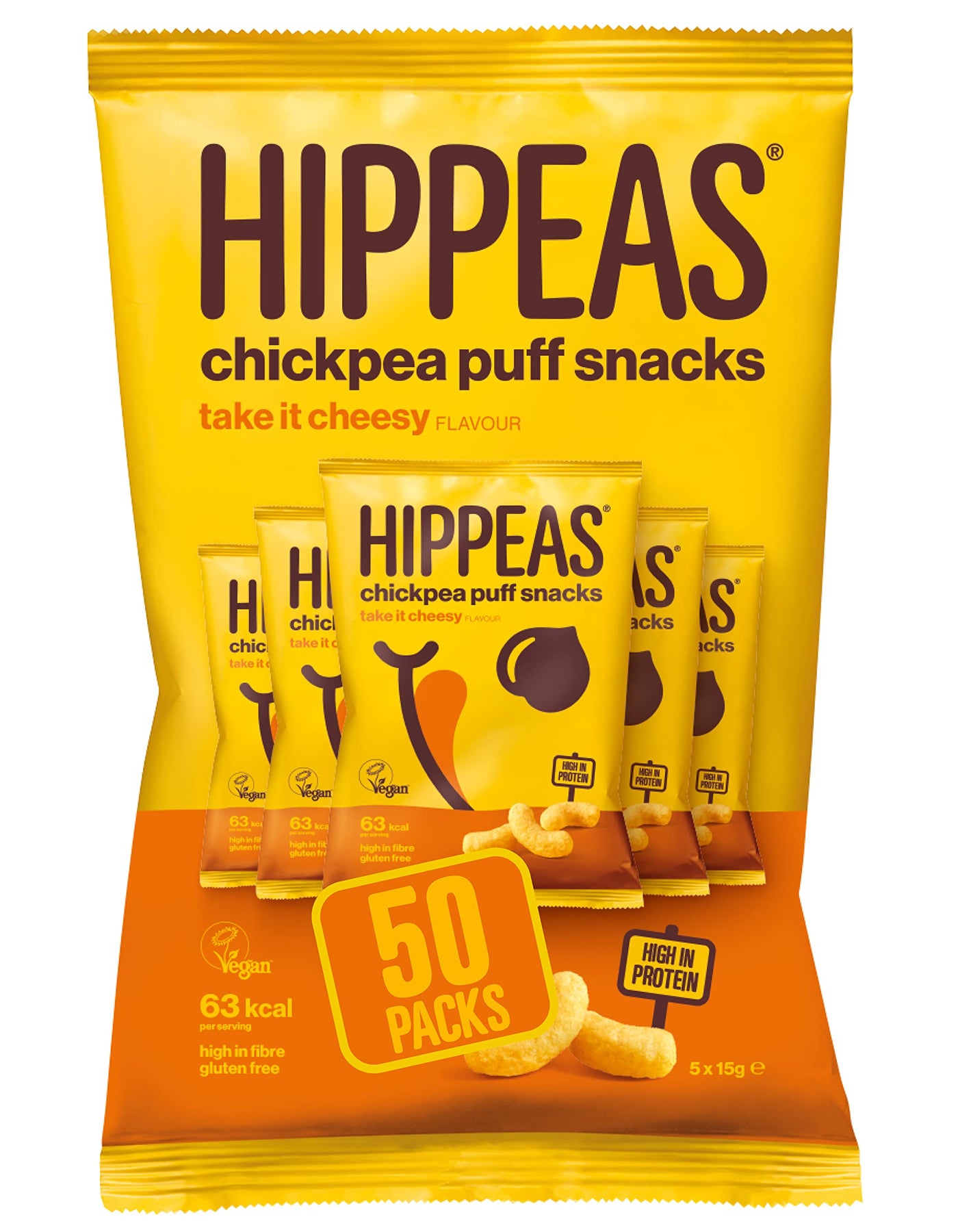 Enjoy the bold, cheesy crunch of Hippeas Take It Cheesy Chickpea Puffs – a plant-powered, vegan snack made from high-protein chickpeas and baked, not fried, for a healthier alternative to traditional crisps.