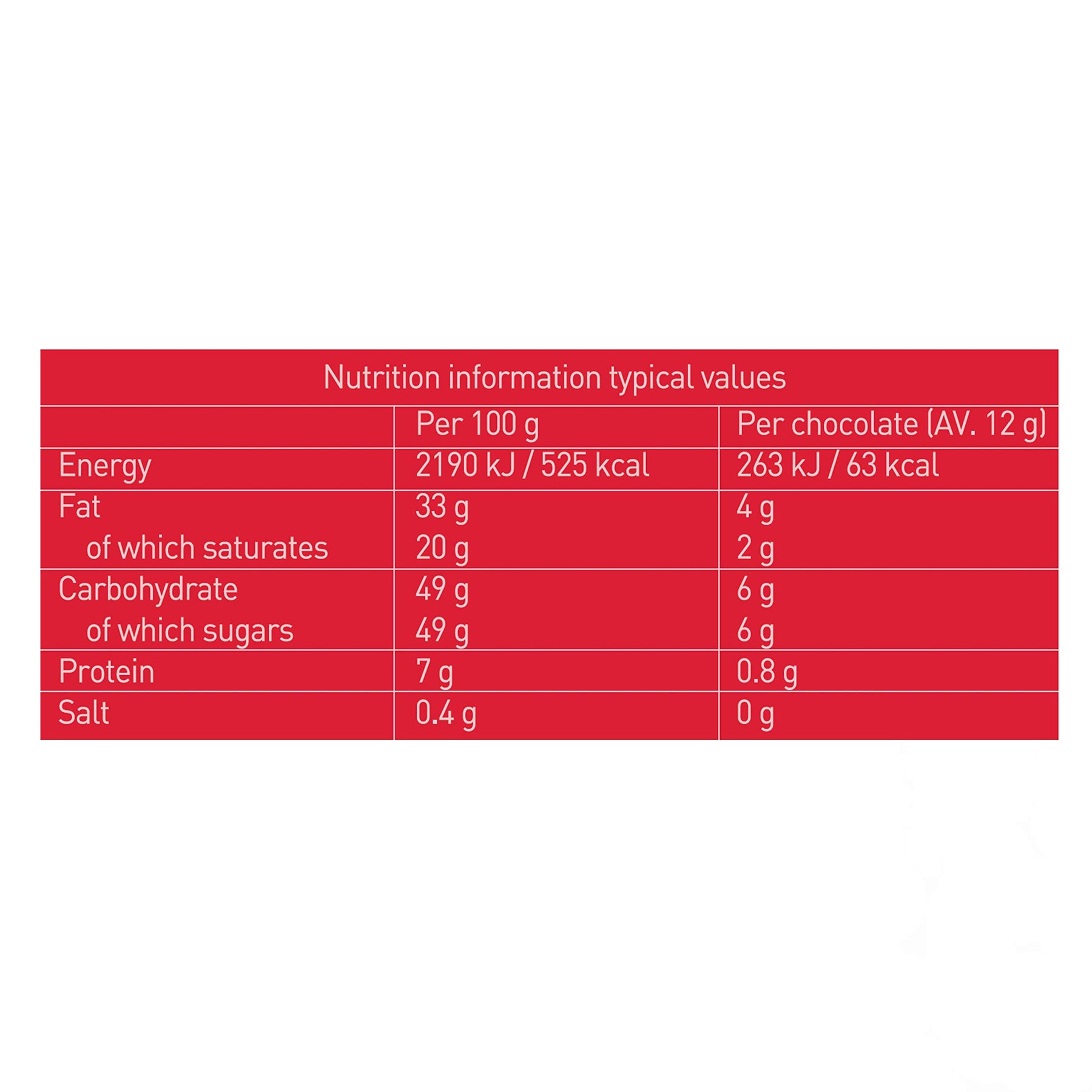 • Crafted with white chocolate containing minimum 28% cocoa butter and 25% milk solids