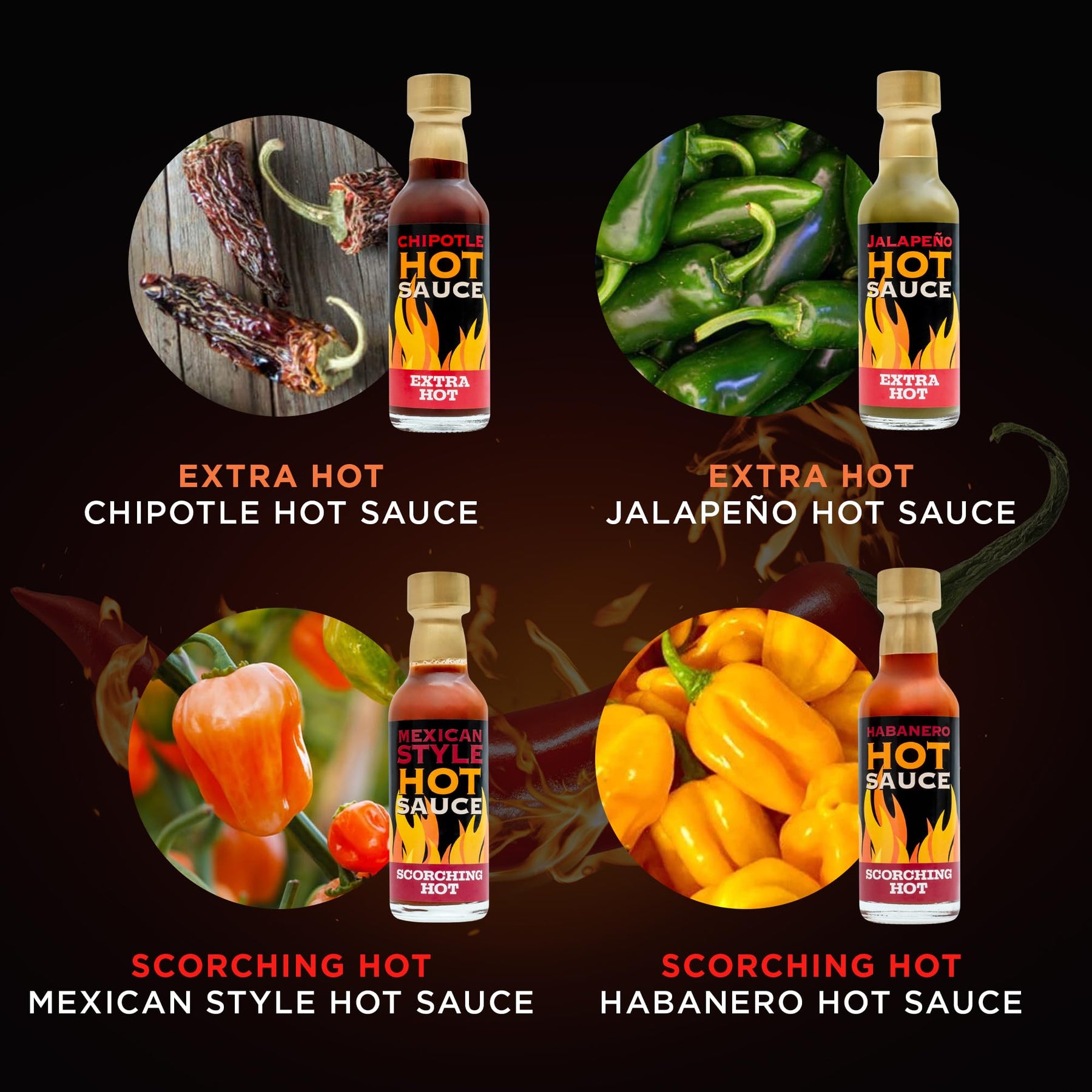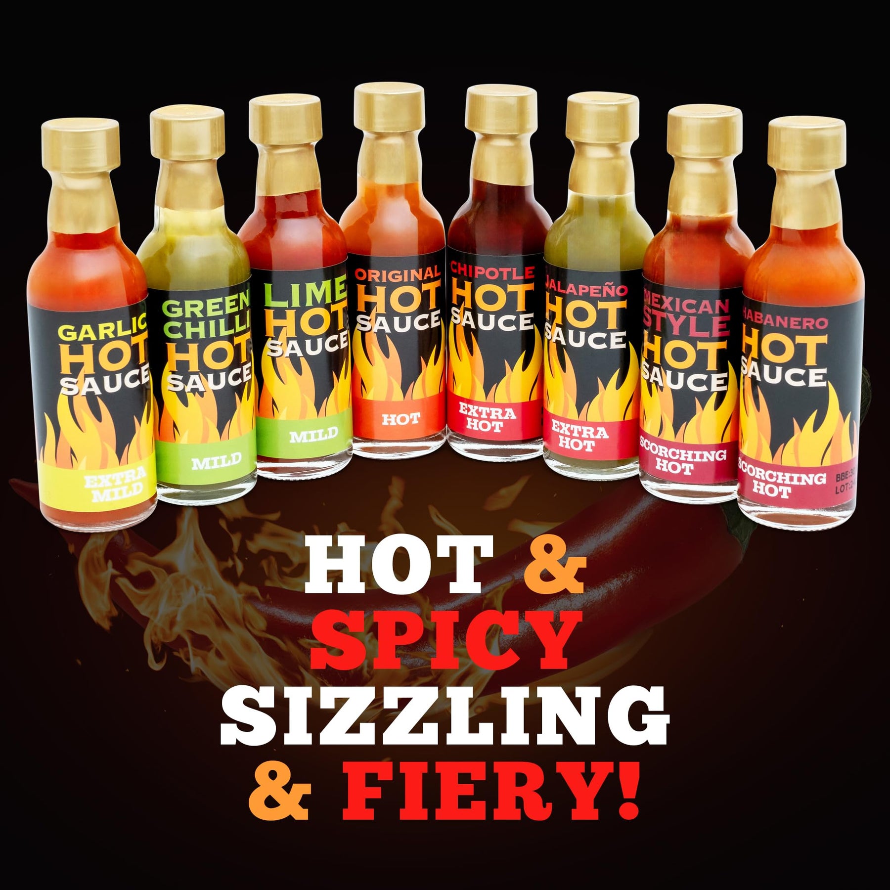 This hot sauce gift set is perfect for spice lovers, featuring 8 bold and fiery sauces ranging from mild to extreme heat. Ideal for adventurous foodies or as a fun challenge, this collection includes Jalapeño, Sriracha, Habanero, Chipotle, Tabasco, Cayenne, Scorpion, and Naga sauces—each delivering intense flavor and increasing heat levels.