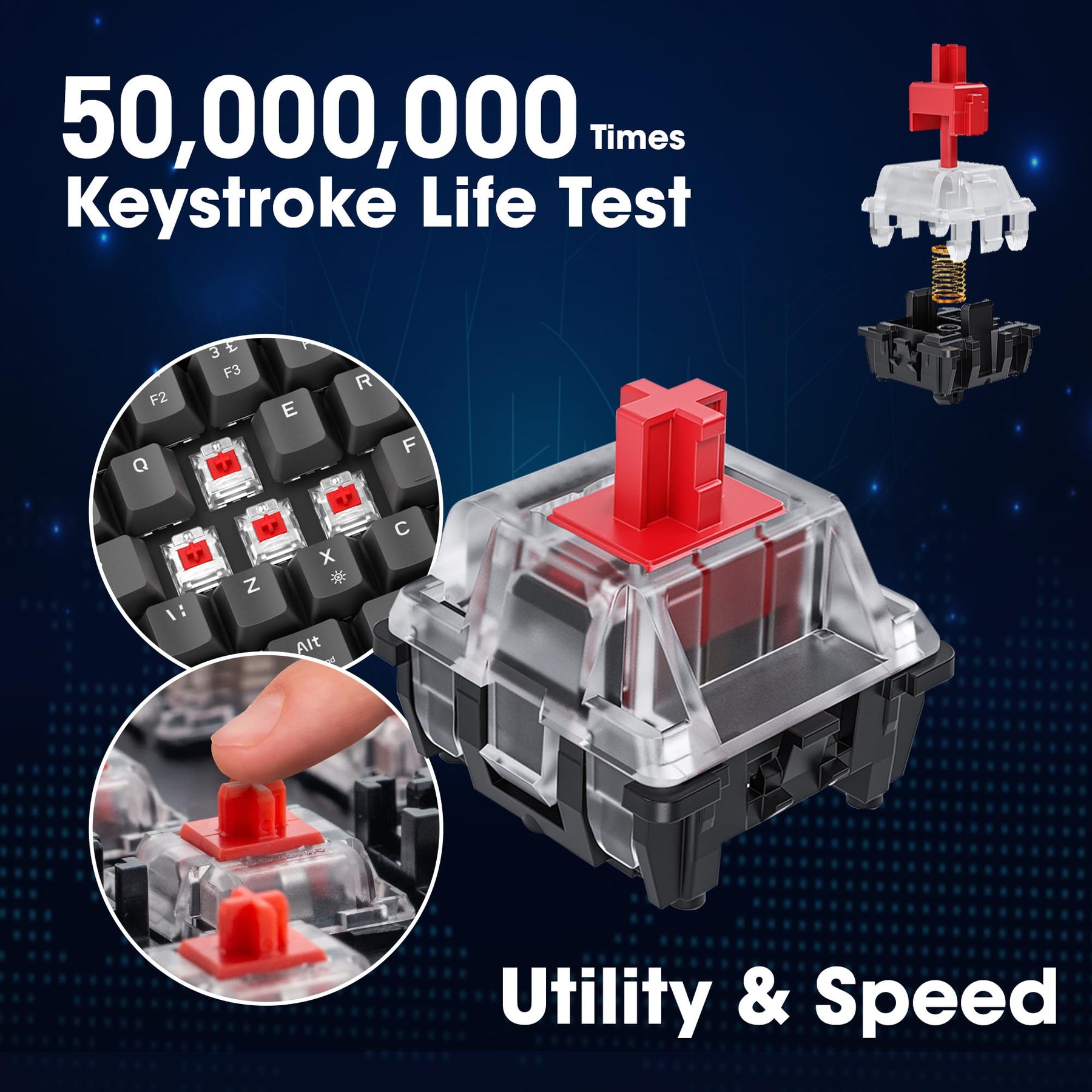 - Equipped with Red Switches for a smooth, quiet typing experience