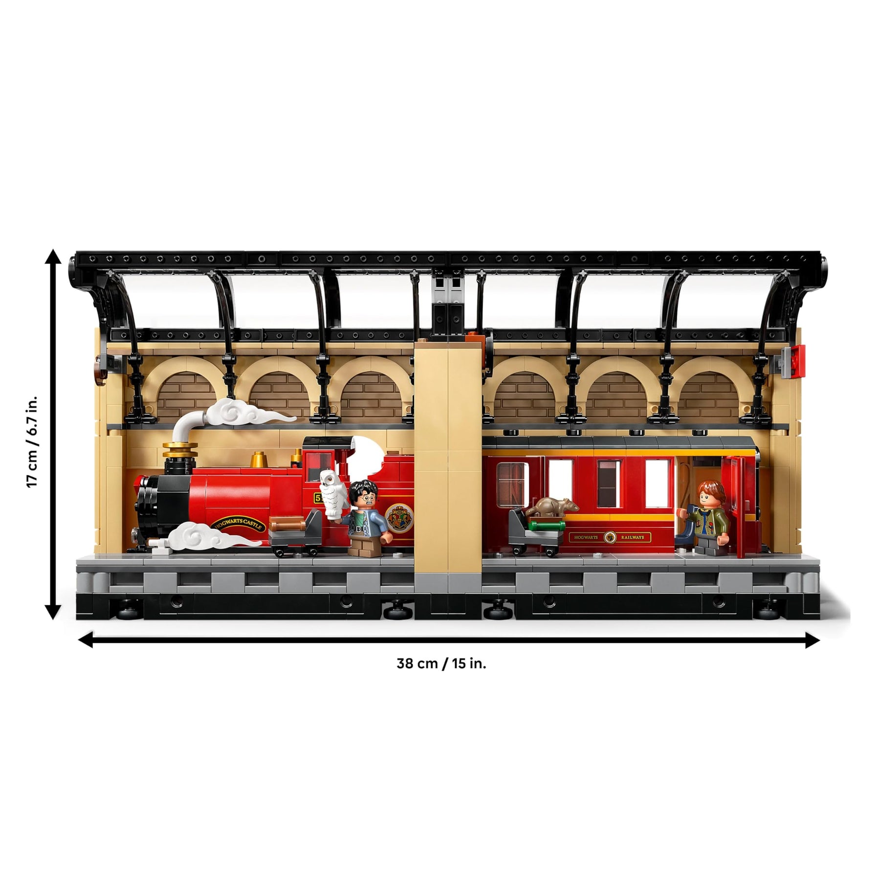 - Buildable Hogwarts Express locomotive and passenger coach with space for minifigures