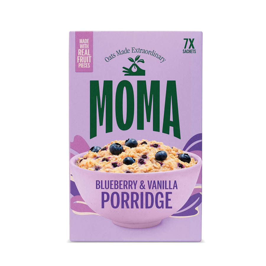 MOMA Blueberry & Vanilla Porridge Sachets provide a quick, nutritious, and delicious breakfast option made with high-quality British oats. Each sachet combines creamy wholegrain jumbo and traditional porridge oats with juicy blueberries and a hint of vanilla for a satisfying start to the day. Ready in just 3 minutes, this porridge is high in fibre and delivers sustained energy, perfect for busy mornings.