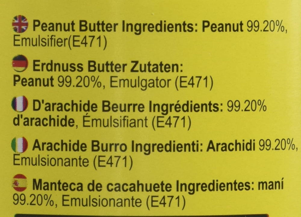 - Ingredients: PEANUTS (99%), Emulsifier: E471