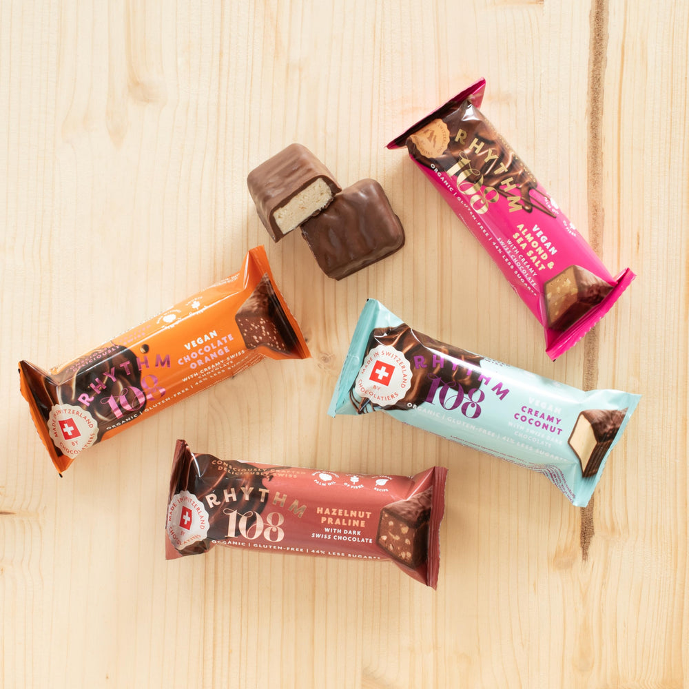 Rhythm 108's Swiss Vegan Creamy Coconut Bar offers a luxurious, plant-based indulgence with a smooth and fragrant coconut center made from 31% coconut flakes, wrapped in rich Swiss dark chocolate. Each bite delivers a harmonious blend of creamy texture and balanced sweetness, crafted mindfully for conscious consumers.