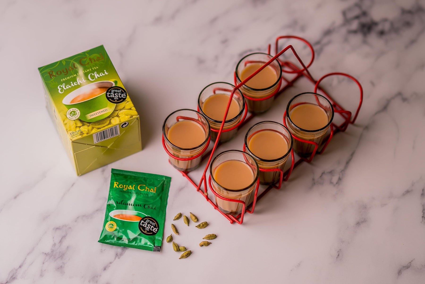 - Ingredients: Sugar, Skimmed Milk Powder, Black Tea Extract (5%), Natural Cardamom