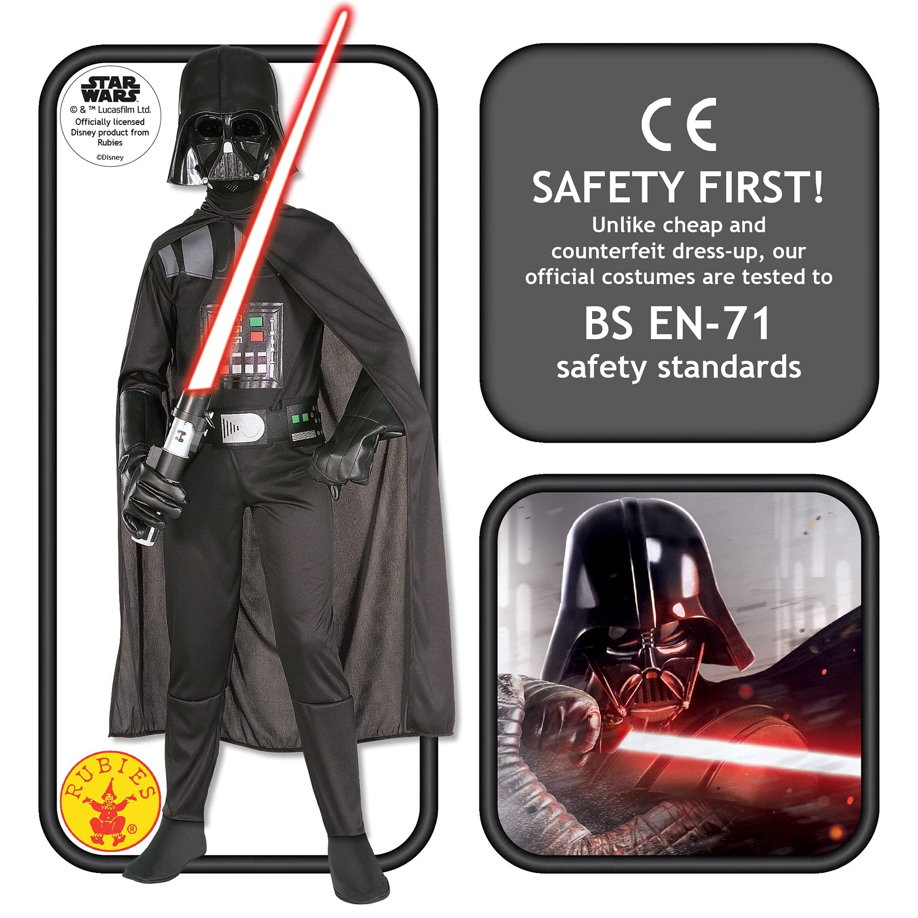- Includes suit, cape, and mask—everything needed for a complete Darth Vader look