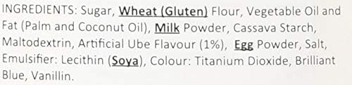 - Ingredients: Sugar, WHEAT Flour, Vegetable Oil (Palm Oil, Coconut Oil), MILK Powder (Buttermilk, Skimmed Milk, Whey), Cassava Starch, Maltodextrin, Flavouring, Whole EGG Powder, Iodised Salt, Emulsifier (Soy Lecithin), Vanillin, Colour (Titanium Dioxide, Allura Red, Brilliant Blue), Antioxidant (Tertiary Butylhydroquinone)