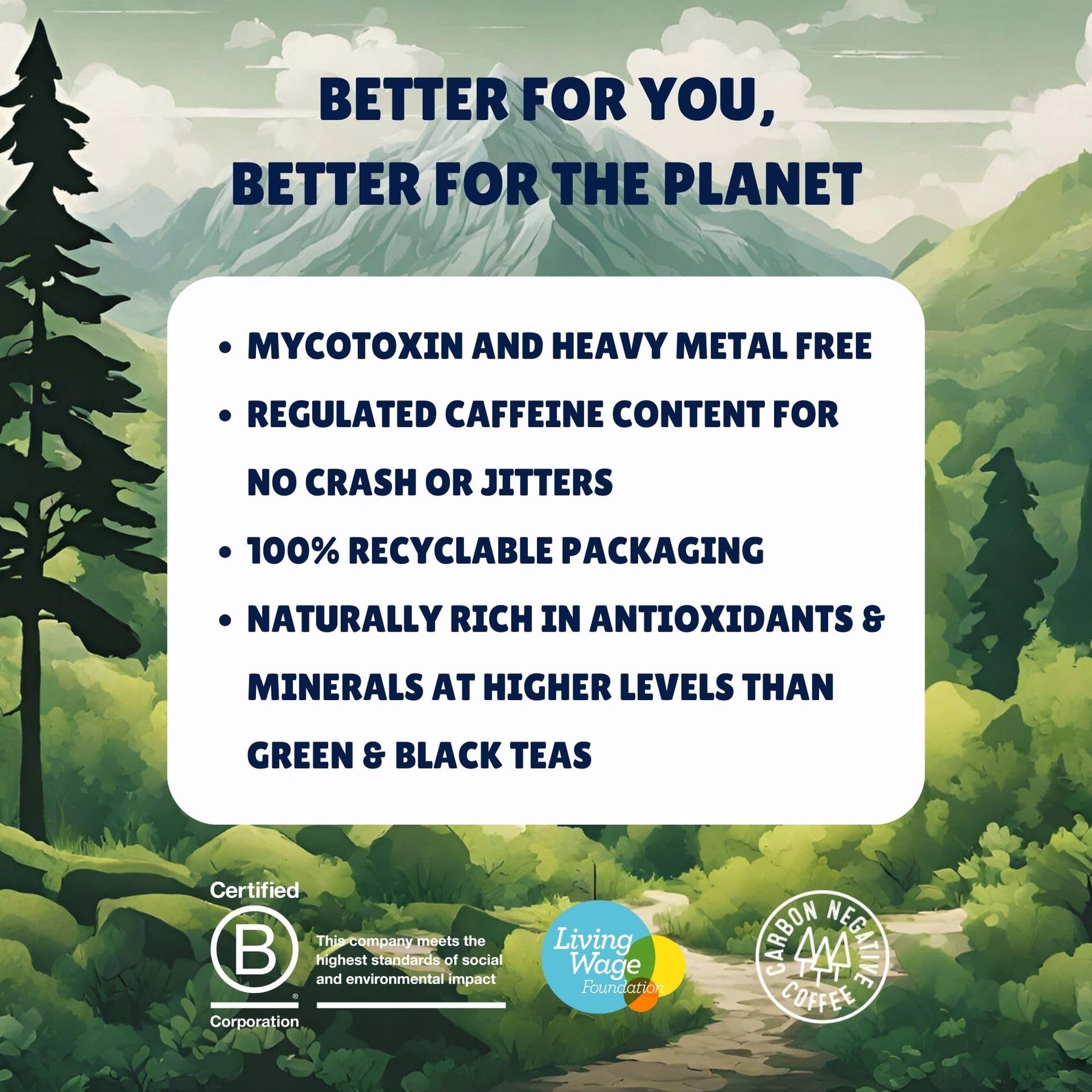 Certified B Corp and carbon negative, TrueStart ensures ethical sourcing and responsible production, giving you peace of mind with every flavorful cup. Scoring 85+ on the SCAA scale, this mycotoxin-free coffee is rich in antioxidants and freshly hand roasted to perfection.