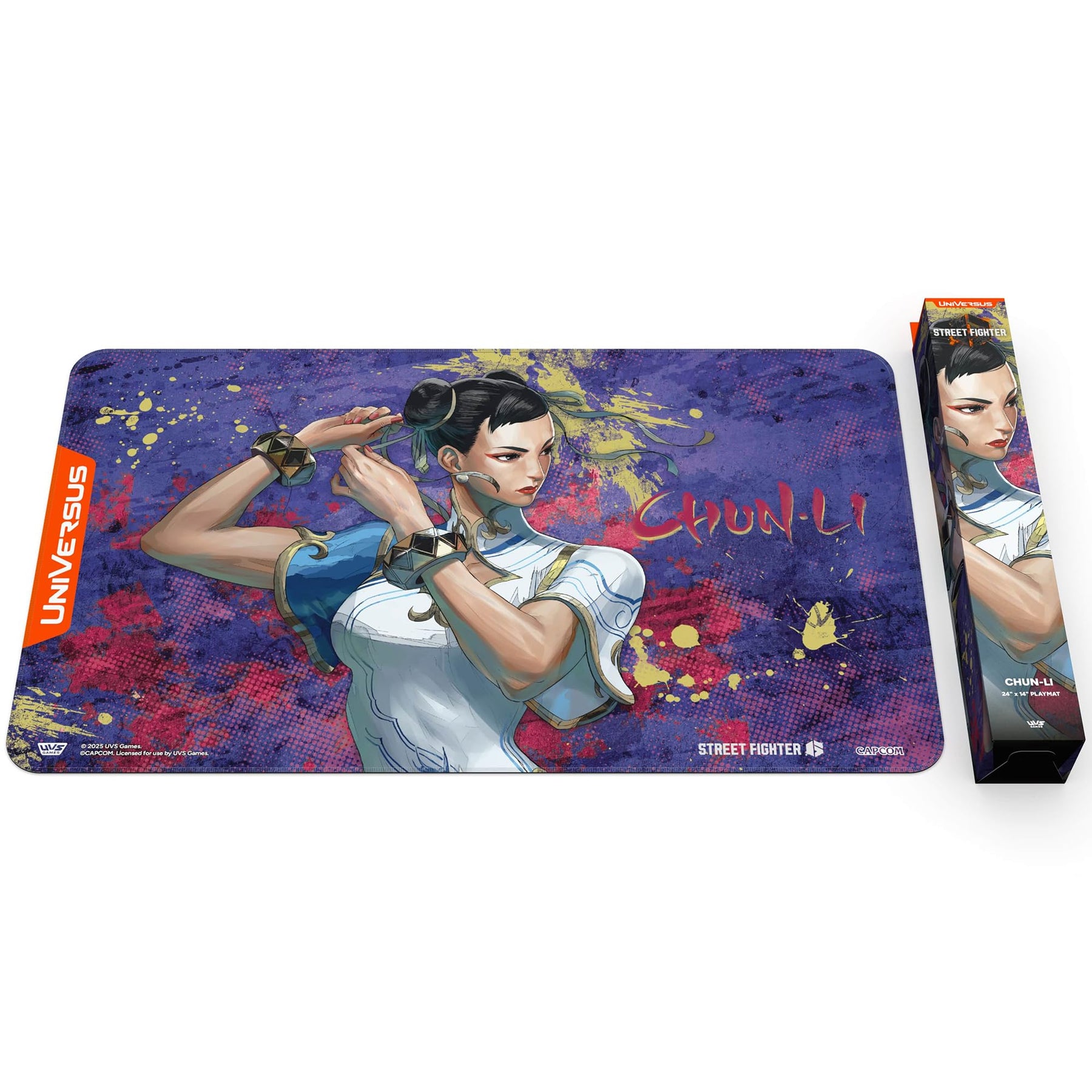Bring the intensity of Street Fighter 6 into your UniVersus card game with the Chun-Li Challenger Series Playmat. Featuring vibrant, exclusive artwork of one of the most iconic fighters in gaming history, this playmat enhances both style and gameplay for fans and competitive players alike.