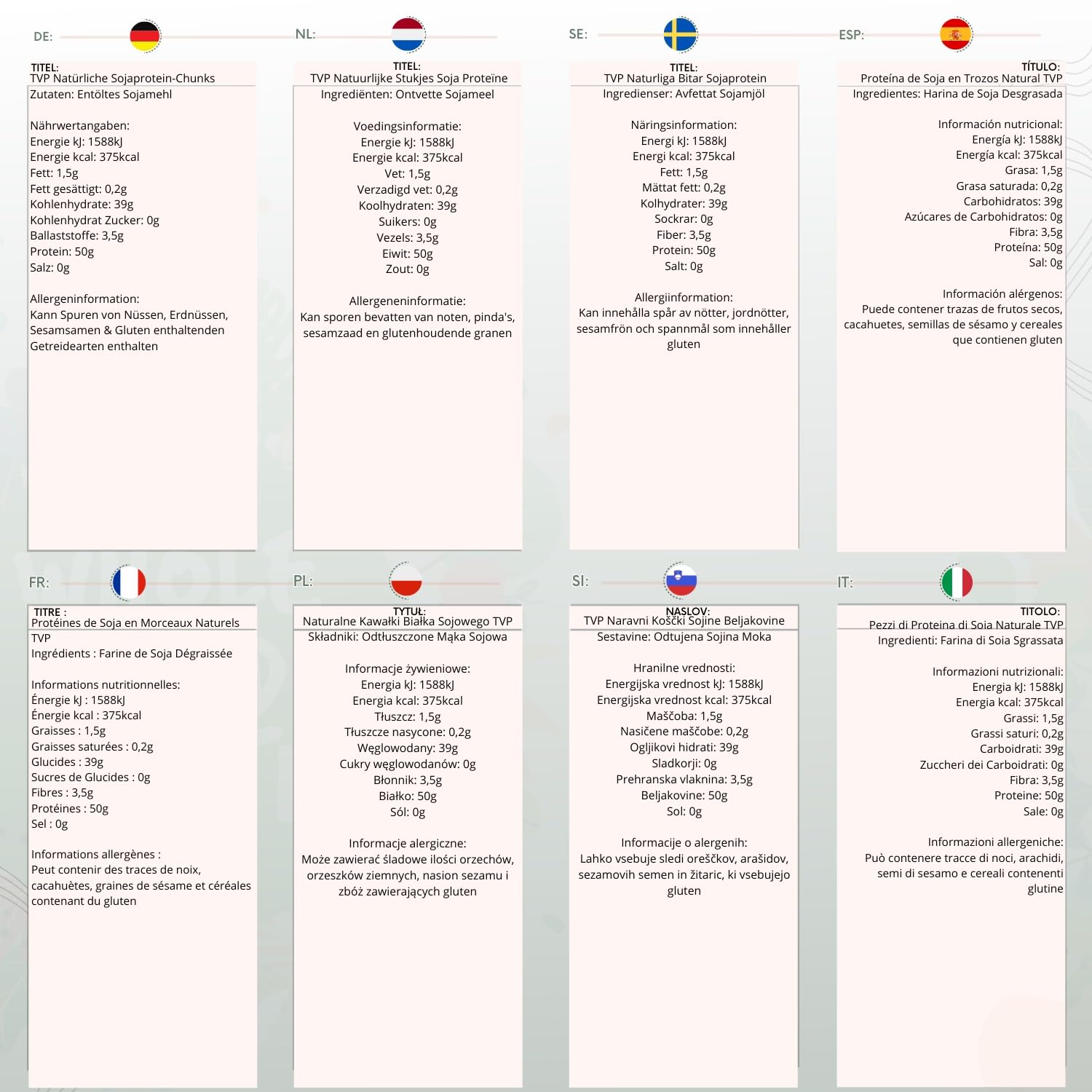 - Textured soya protein (TVP) made from non-GMO soya beans