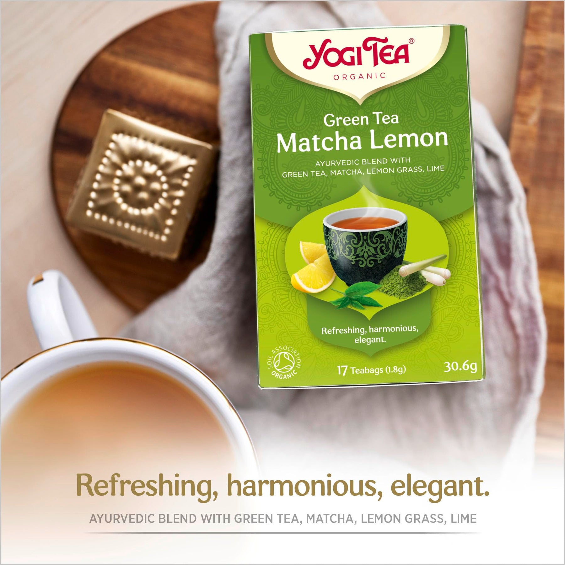 Experience a refreshing and harmonious blend with YOGI TEA's Matcha Lemon Organic Green Herbal Tea, crafted for those seeking fresh focus and mindful moments in their day. This 100% organic tea combines elegant green teas with premium matcha, lemongrass, and lime to deliver a sophisticated flavor rooted in Ayurvedic herbalism and Buddhist green-tea craftsmanship.