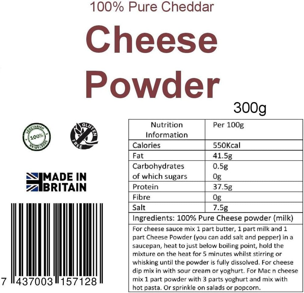 British cheese powder with a strong natural cheese flavour, perfect for adding rich cheddar taste to a variety of recipes without the need for cooking. Simply sprinkle or mix into sauces, snacks, and savoury dishes for instant flavour enhancement.