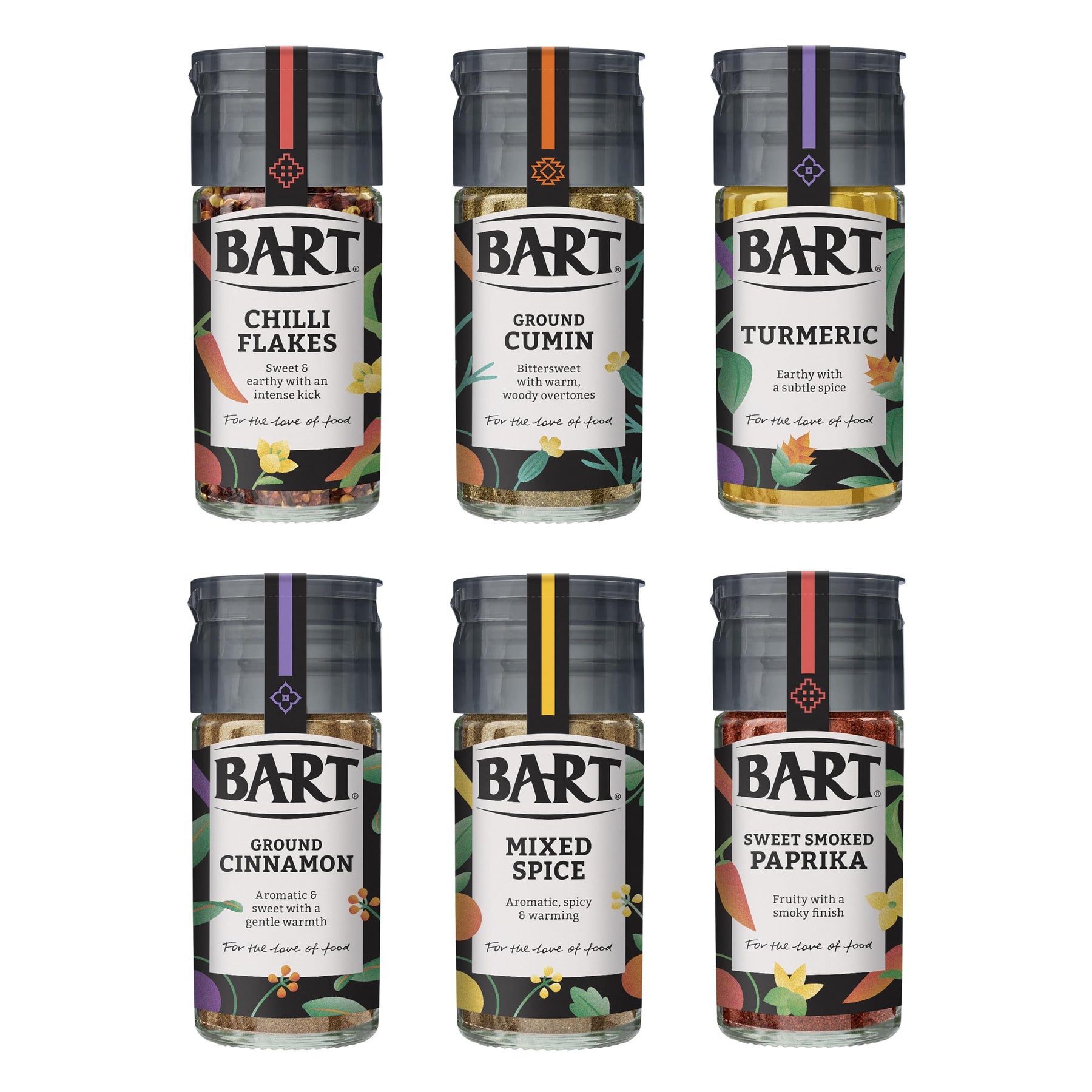 - SPICES INCLUDED: Chilli Flakes, Turmeric, Ground Cumin, Ground Cinnamon, Sweet Smoked Paprika, and Mixed Spice