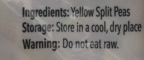 - 100% pure dried yellow split peas – no additives, preservatives, or artificial colours