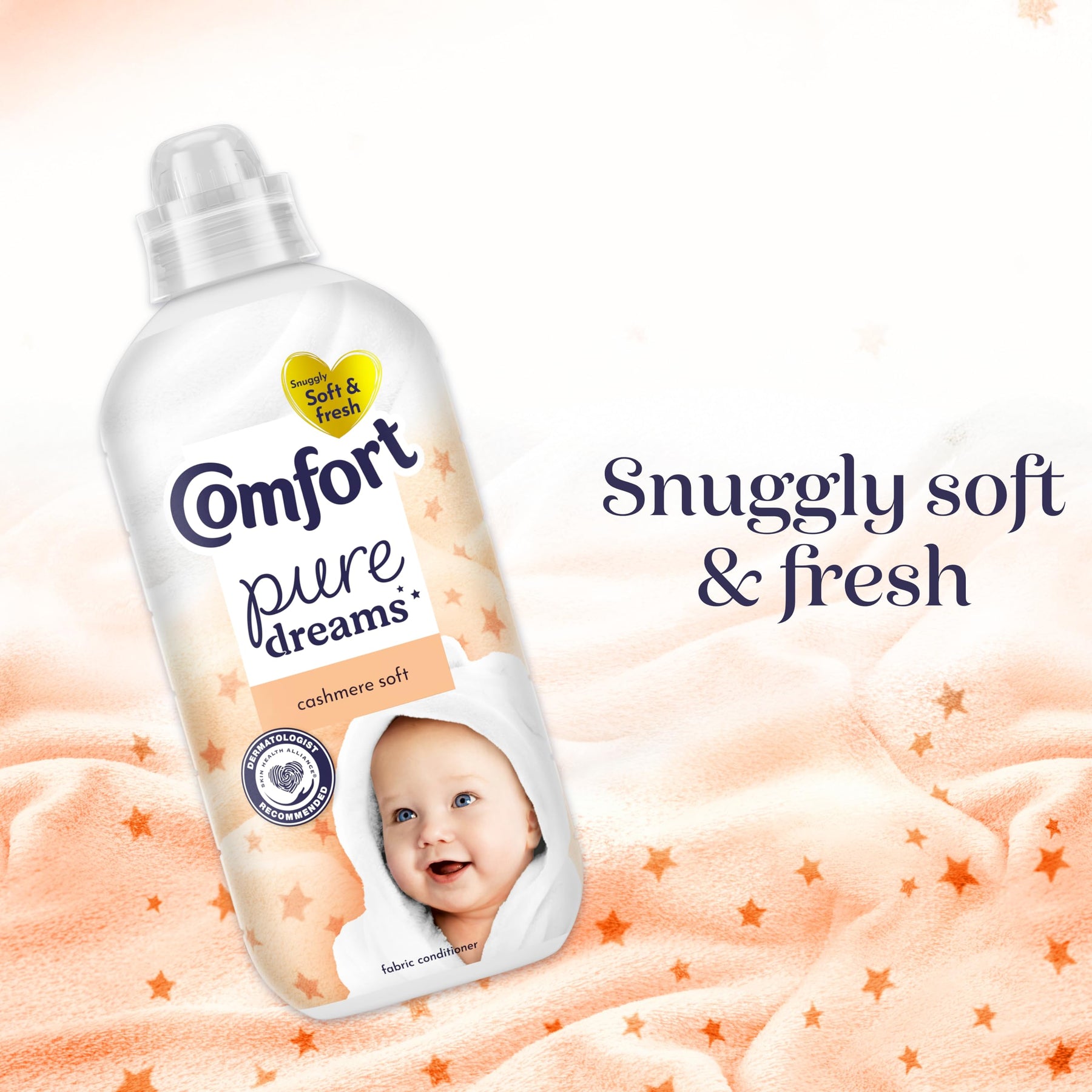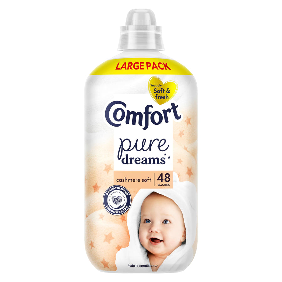Infuse your laundry with luxurious softness and a delicate, soothing scent using Comfort Pure Dreams Cashmere Soft Fabric Conditioner. Dermatologist recommended by the Skin Health Alliance, this gentle formula is ideal for sensitive and baby skin, delivering snuggly soft clothes with every wash. Experience long-lasting freshness and enhanced comfort for all your washable fabrics.
