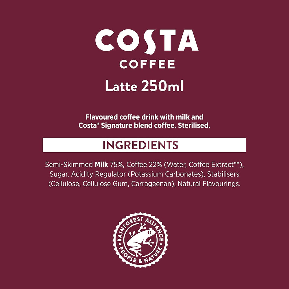 Experience the rich heritage of Costa Coffee with every sip of this deliciously creamy latte – perfect for coffee lovers seeking quality and convenience.
