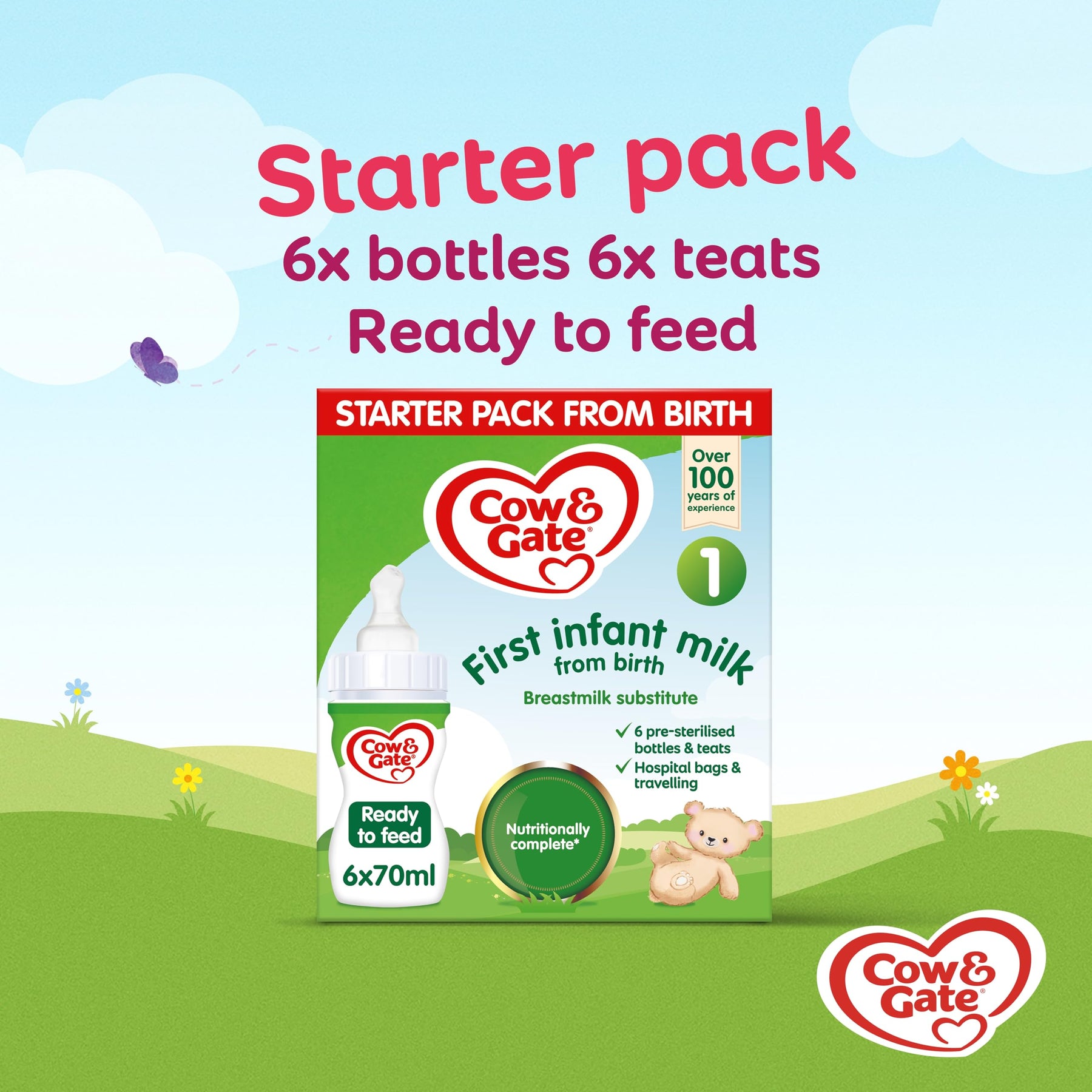 Cow & Gate 1 First Baby Milk Formula Starter Pack from Birth - 6x70ml Ready-to-Feed Bottles with Teats