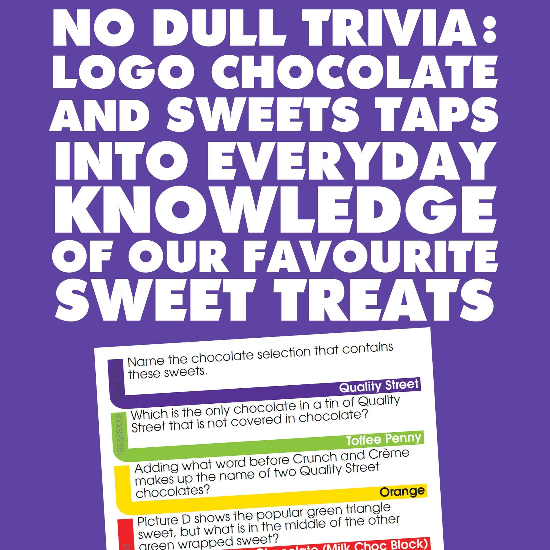 - Engaging trivia gameplay centered around chocolate and sweets logos