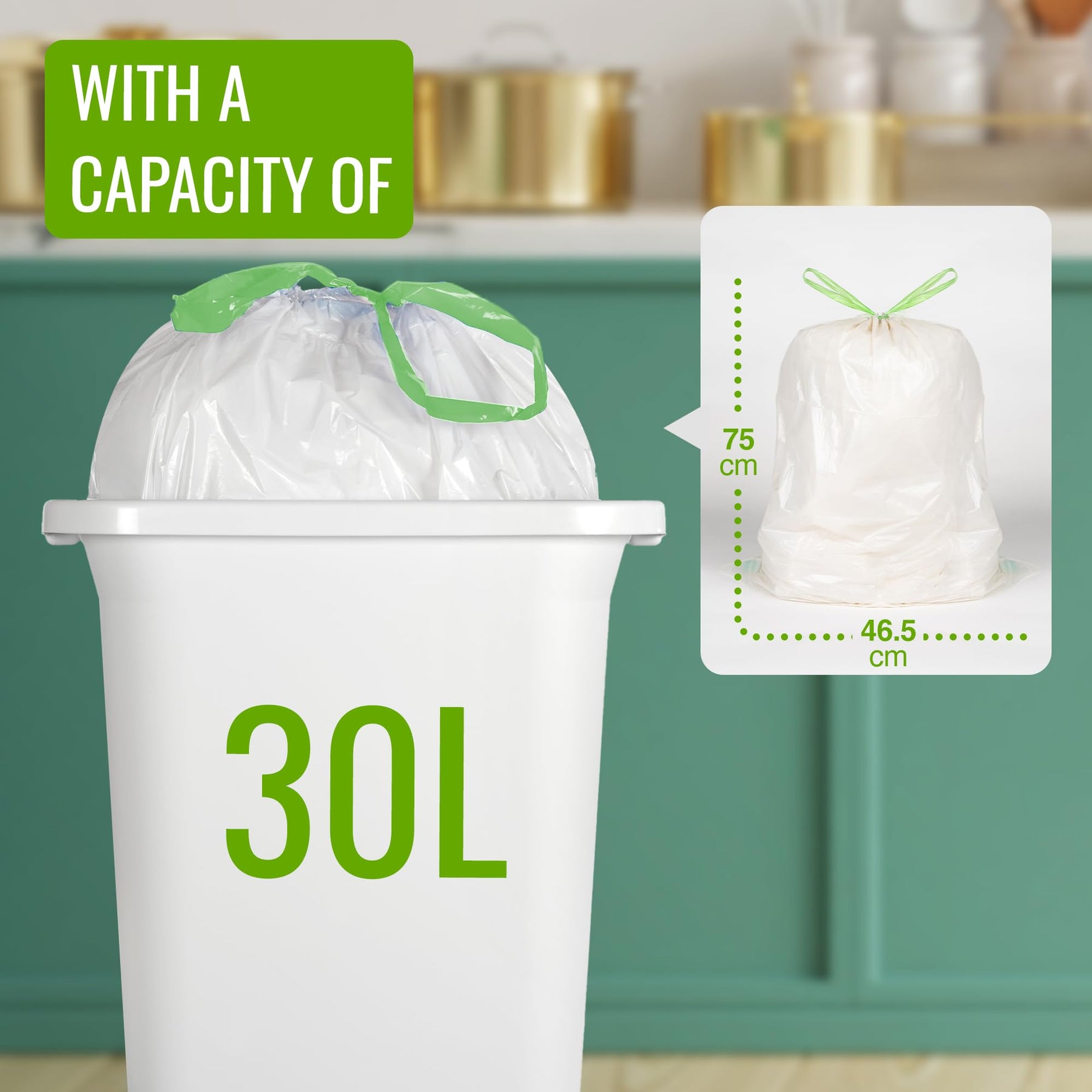 Durable and reliable, the Eco360 Extra Strong Kitchen Drawstring Bin Liners are designed for heavy-duty use and easy waste management. With a 30-liter capacity, these bin liners are ideal for kitchen bins and everyday use.