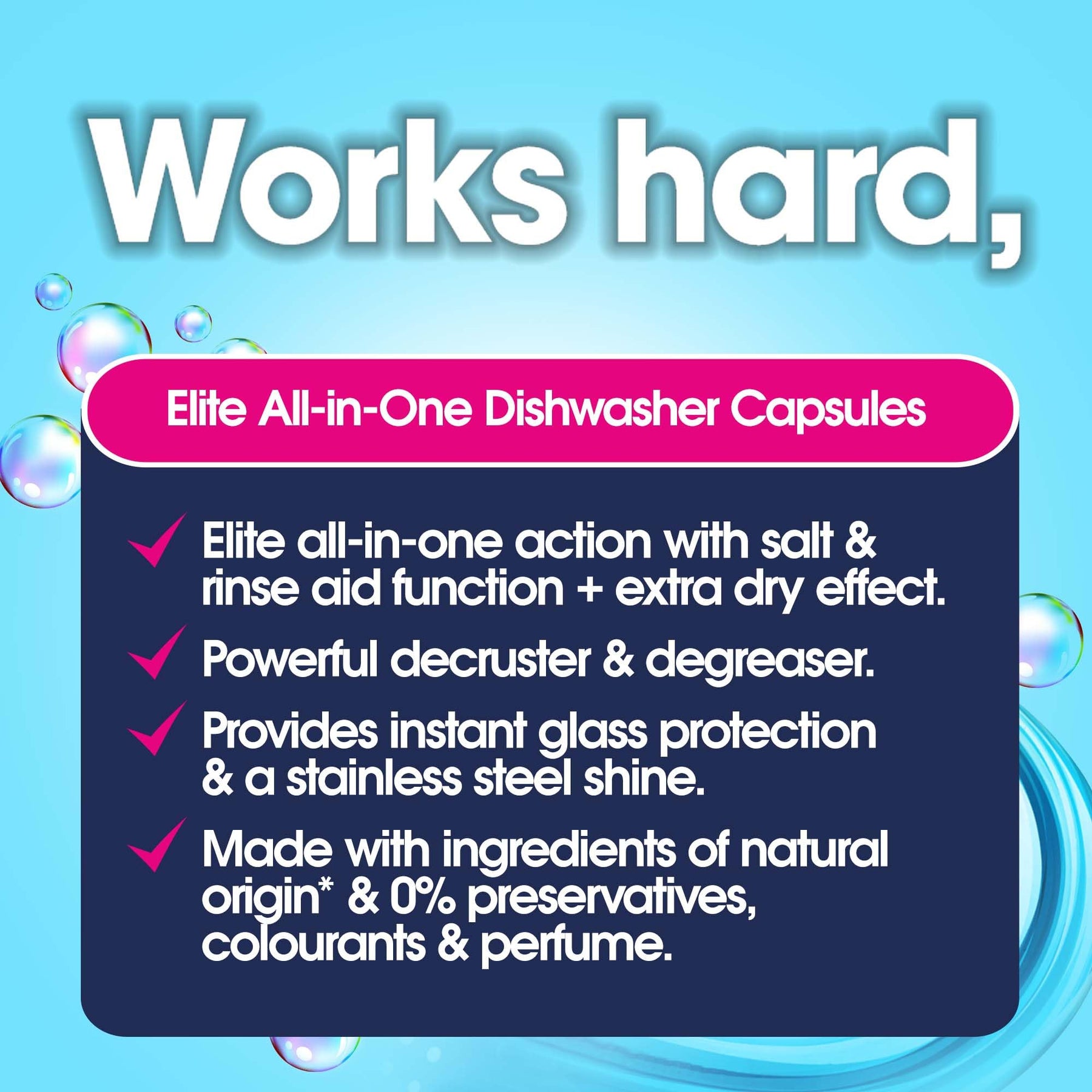 • All-in-one formula with built-in salt, rinse aid, and extra-dry effect