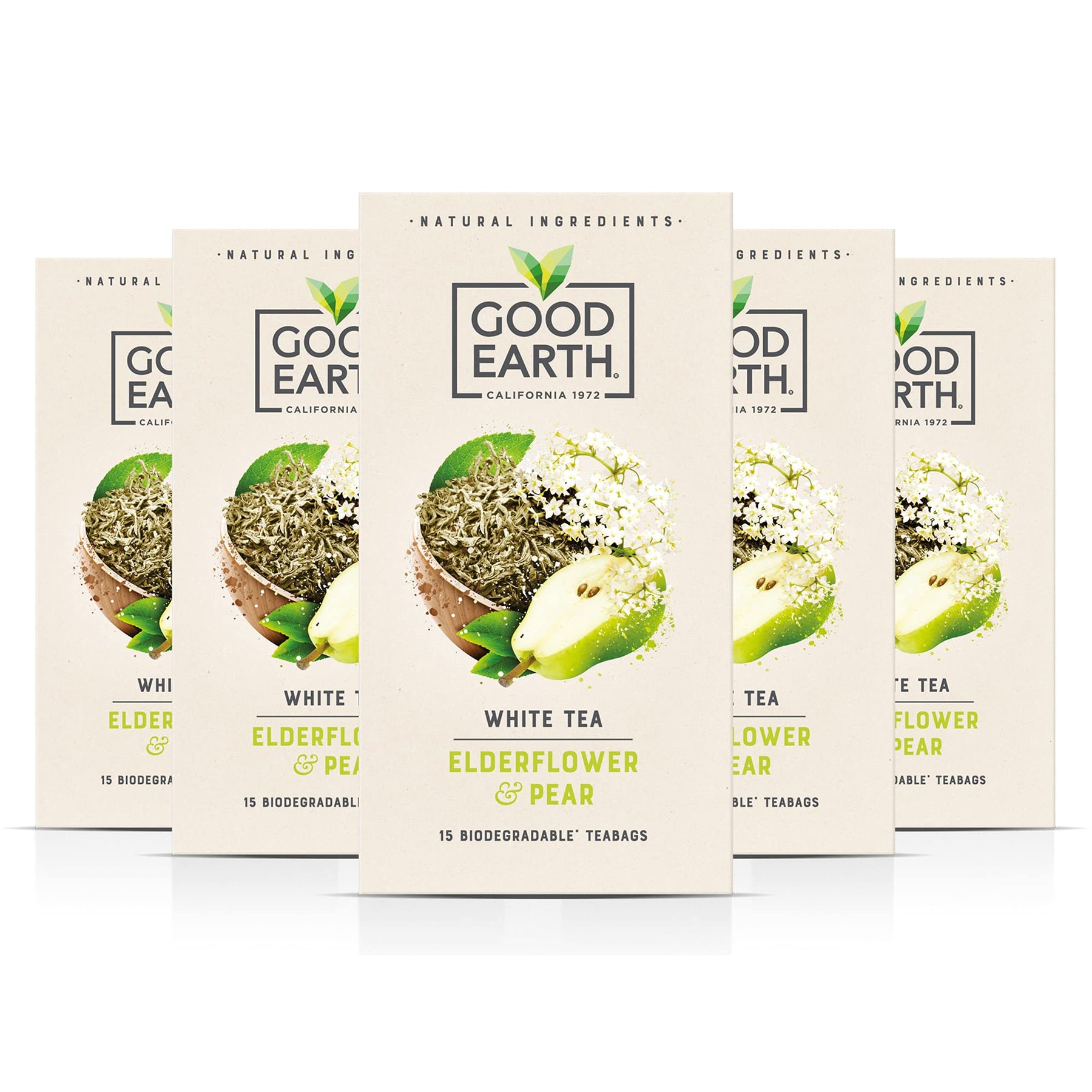 Indulge in the delicate and elegant blend of Good Earth Tea Co.'s White Tea Elderflower & Pear. Expertly crafted with natural flavours, this tea combines the crisp sweetness of pear with elderflower sourced from the rolling hills and ancient forests of Eastern Europe, creating a truly enchanting cup.