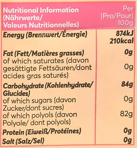 - Sweetened with maltitol and steviol glycosides from Stevia