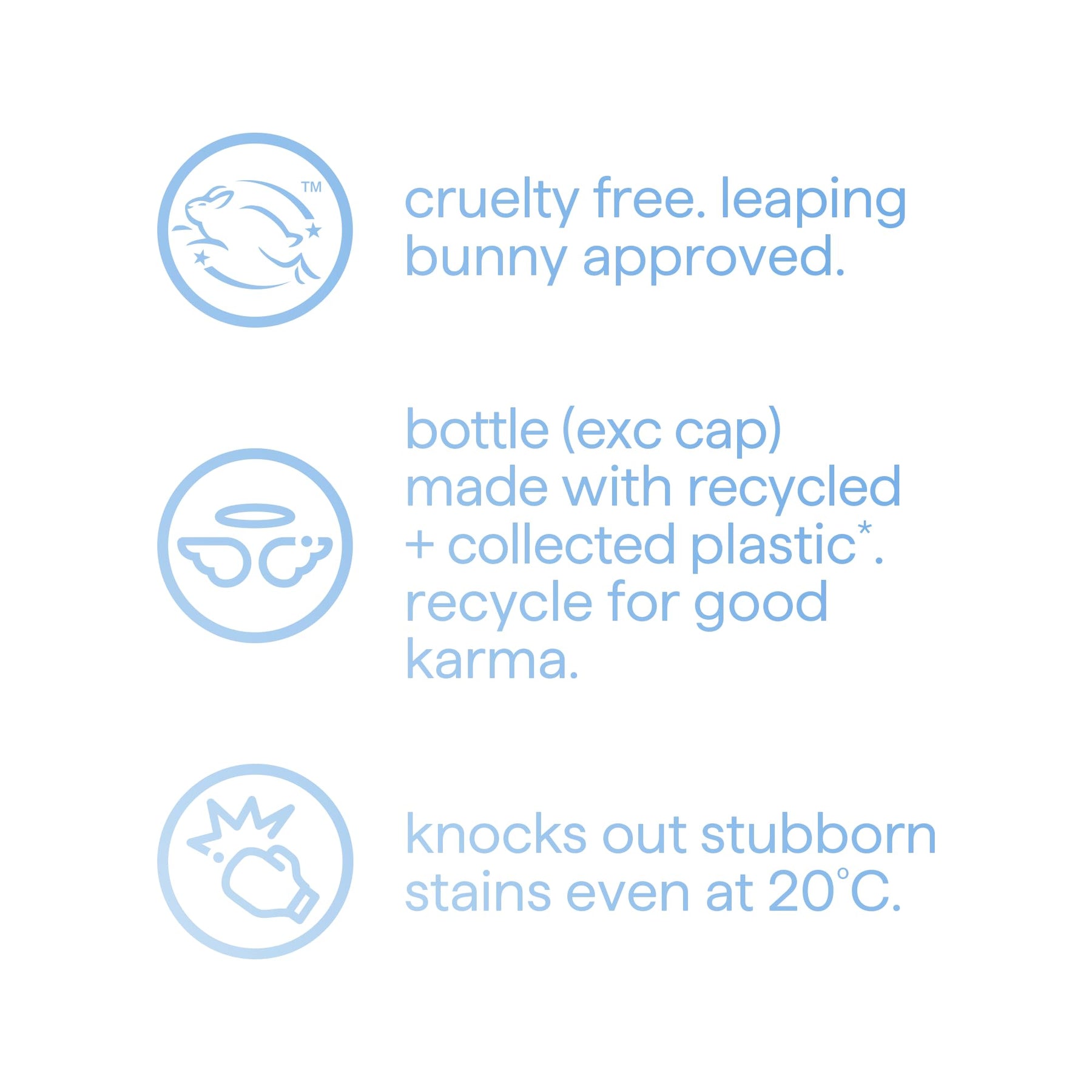 • Effective at low temperatures (20°C), saving energy while removing tough stains