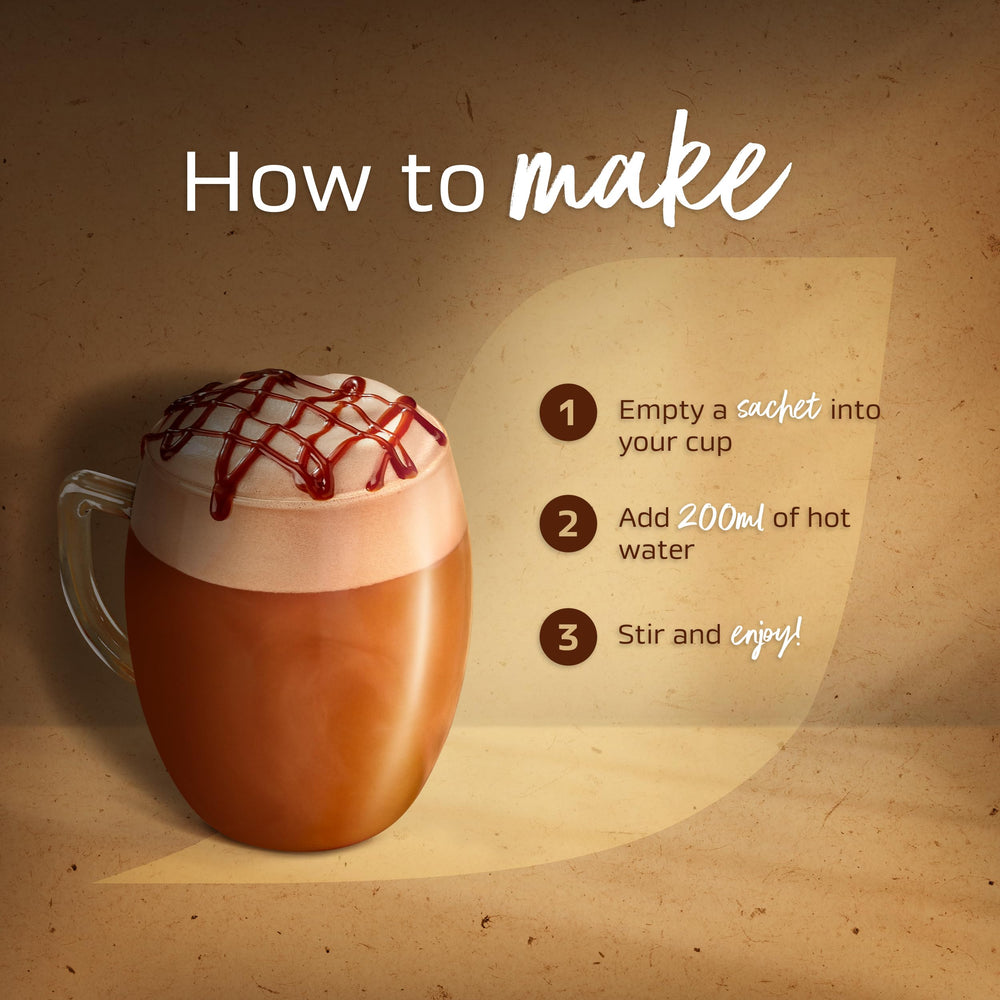 - Preparation: Empty one sachet into a mug, add 200ml hot water, stir well