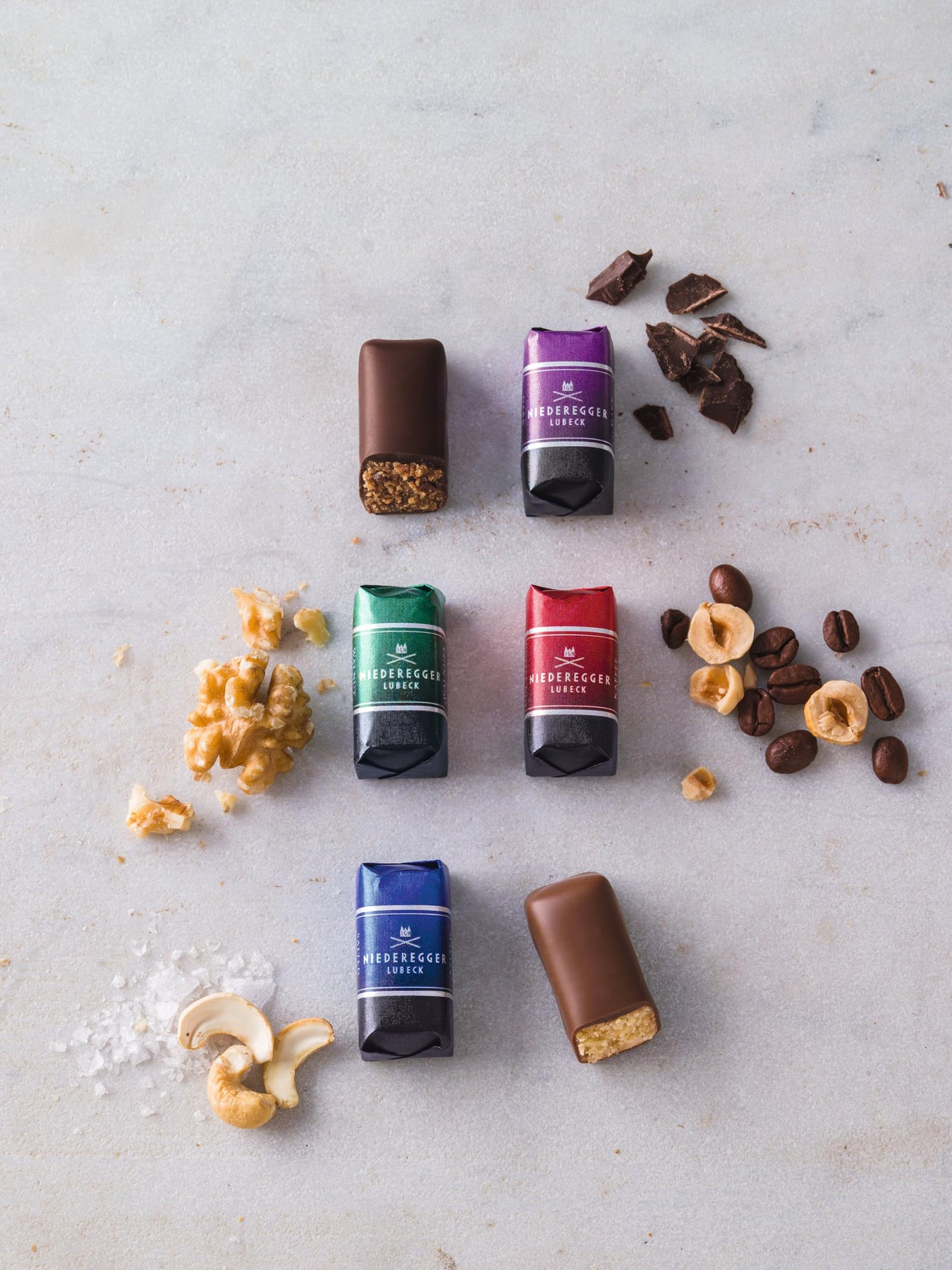 Niederegger's After Dark Edition is a luxurious selection of pure almond marzipan treats, expertly enrobed in rich dark and milk chocolate. Crafted in Lübeck on the Baltic coast, each piece reflects over 200 years of traditional confectionery mastery using the secret recipe from 1806.