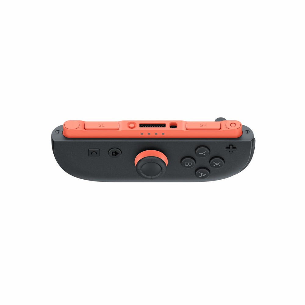 Right Light Red Joy-Con 2 controller designed exclusively for use with the Nintendo Switch 2 console. This updated controller features enhanced motion controls, HD Rumble 2 technology, and a new C Button for quick access to GameChat in compatible games. It also supports all-new mouse controls in supported titles, expanding gameplay possibilities.