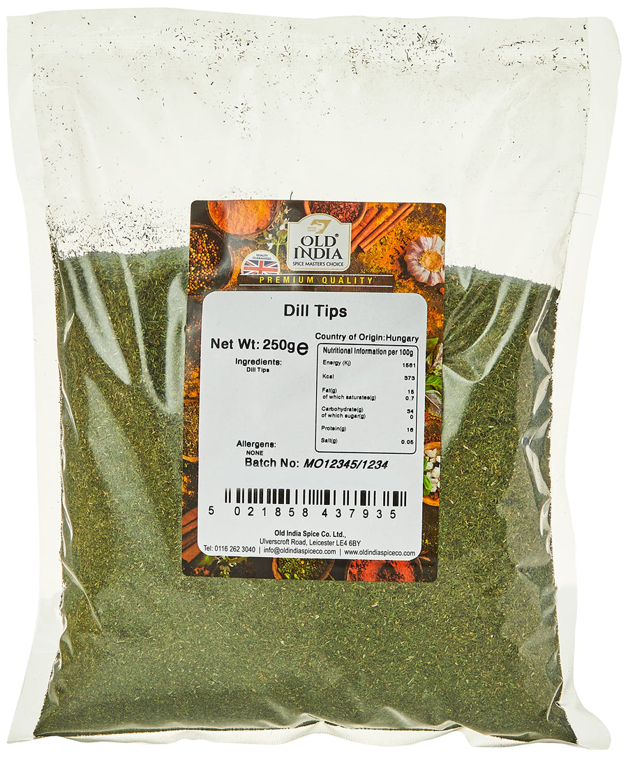 Old India Dill Tips are 100% natural, additive-free, and GMO-free, sourced from the origin of the ingredient and packed in a vegetarian atmosphere to ensure quality and freshness. This aromatic herb is ideal for enhancing curries, vegetable dishes, sauces, soups, stews, and more.