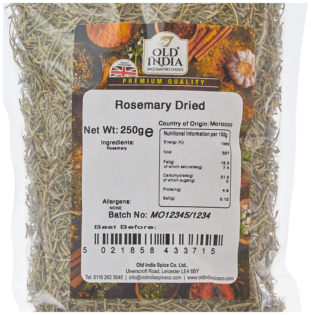 Old India Rosemary is a 100% natural, additive-free, and GMO-free dried herb, expertly sourced from its origin and packed in a vegetarian atmosphere to ensure purity and freshness. This aromatic herb comes in a heat-sealed bag that preserves flavor and quality, offering a shelf life of up to two years.