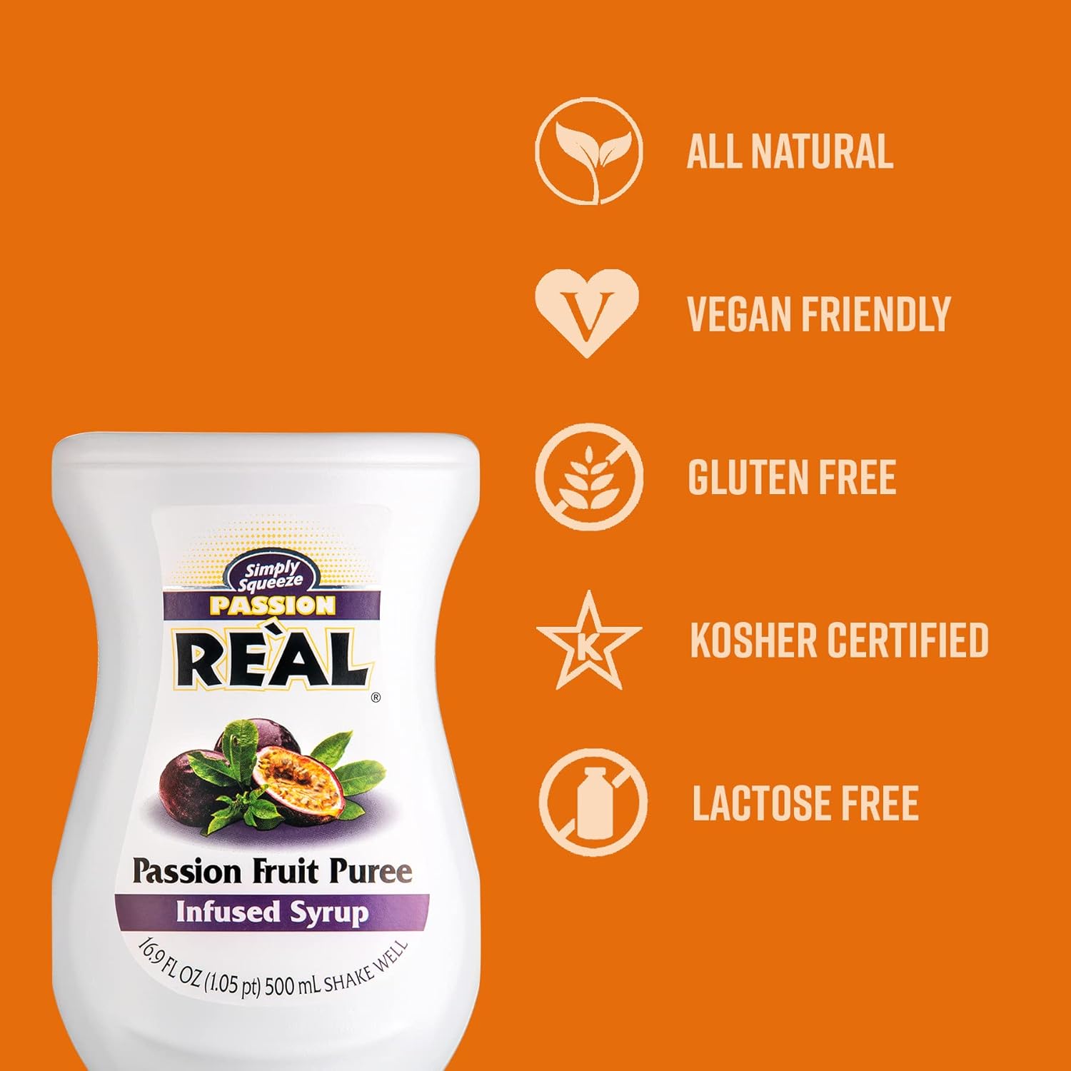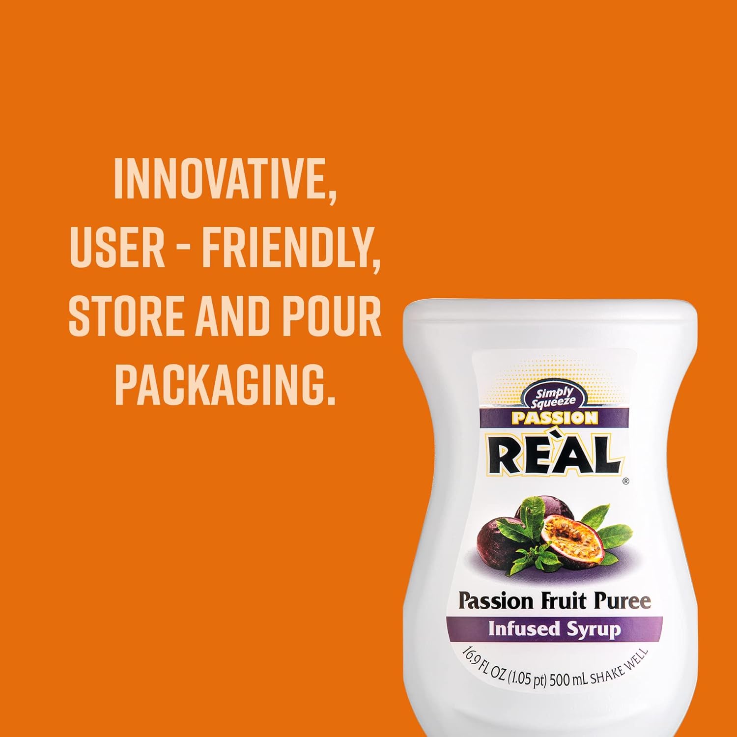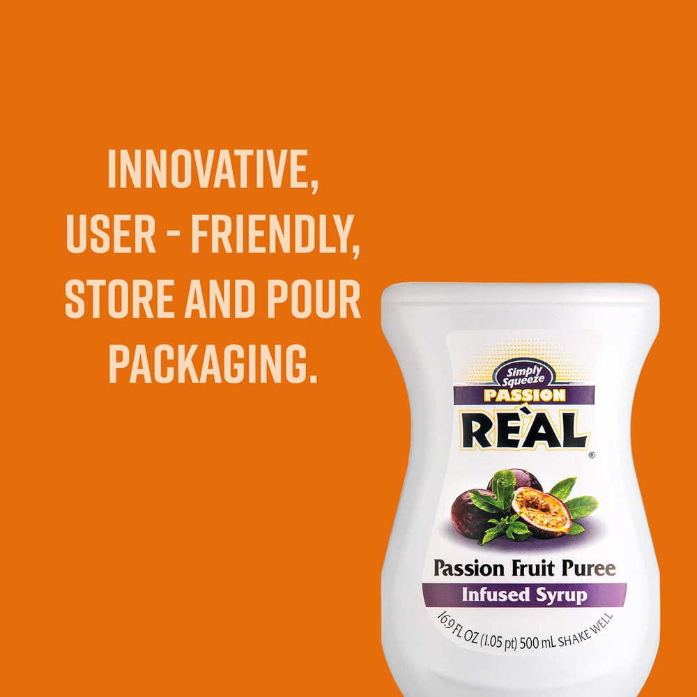 RE"AL Passion Fruit Puree Infused Fruit Syrup brings vibrant, tropical flavor to cocktails, soft drinks, juices, desserts, and culinary creations. With 39.5% real passion fruit puree, this premium syrup delivers authentic taste and mixologist-approved quality in every pour.